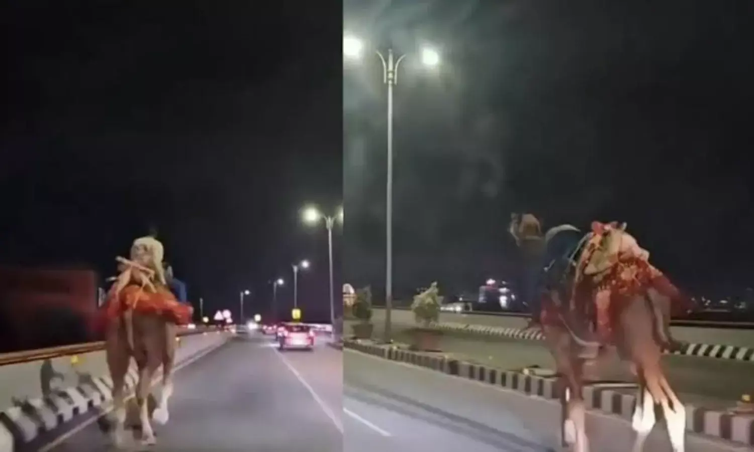 ఆరాంఘర్ వైపు వెళ్లే PVNR ఎక్స్ప్రెస్ ఫ్లైఓవర్ బ్రిడ్జిపై ఓ కుర్రాడు ఒంటెపై వెల్తూ కనిపించాడు.