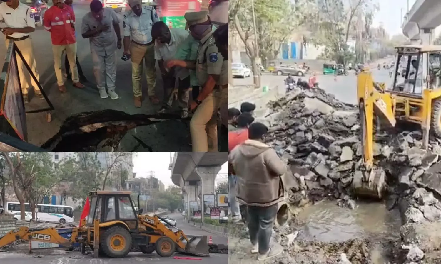 మాధాపూర్ సైబర్ గేట్ వద్ద రోడ్డు కుంగిపోవడంతో ట్రాఫిక్కు అంతరాయం ఏర్పడింది. ఐకియా నుంచి సైబర్ టవర్స్, జేఎన్టీయూ వైపు వెళ్లే మార్గంలో వాహనాల రద్దీ పెరిగింది.