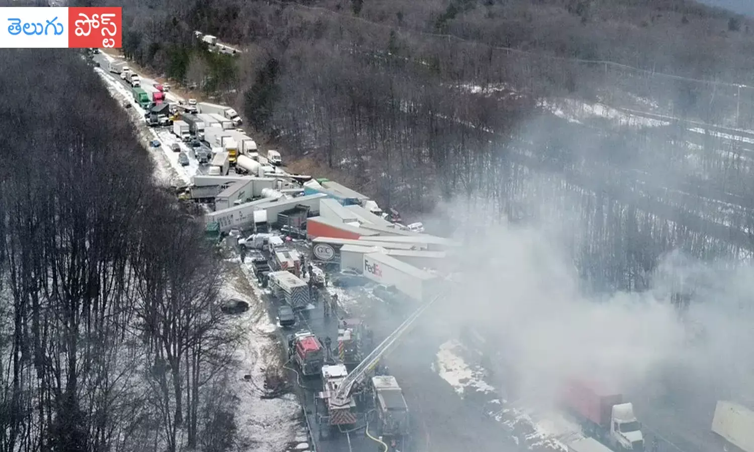 అమెరికాలోని పెన్సిల్వేనియా హైవేపై సోమవారం భారీగా మంచు కురిసింది. దాంతో వాహనాల రాకపోకలకు అంతరాయం ఏర్పడింది. ఈ క్రమంలో 50 నుంచి 60 వాహనాలు ఒకదానినొకటి ఢీ కొన్నాయి. వాటిలో కార్లు, ట్రాక్టర్ ట్రాలీలు ఉన్నట్లు తెలుస్తోంది. ఈ ప్రమాదంపై సమాచారం అందుకున్న అధికారులు సహాయక చర్యలు చేపట్టారు. మంచును తొలగించేందుకు ప్రయత్నాలు చేస్తున్నారు. ఈనెలలో ఇలాంటి ప్రమాదం జరగడం రెండవసారి అని స్థానిక పోలీసులు తెలిపారు.