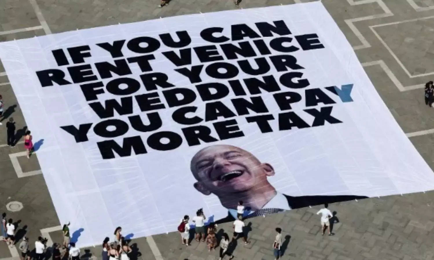 ప్రపంచ కుబేరుల్లో ఒకరైన జెఫ్ బెజోస్, జర్నలిస్ట్ లారెన్ శాంచెజ్ల వివాహానికి ఓ వైపు ఏర్పాట్లు సాగుతున్నాయి. వెనిస్ నగరం దీనికి వేదిక కానుంది. ఇదే సమయంలో వేడుకను వ్యతిరేకిస్తూ స్థానికుల నుంచి తీవ్ర నిరసనలు వస్తున్నాయి. భారీగా ఖర్చుపెట్టే సంపన్నుల నుంచి అధిక పన్నులు వసూలు చేయాలని డిమాండ్ చేస్తున్నారు స్థానికులు. ఈ వివాహం కోసం వెనిస్ నగరంలో భారీ ఏర్పాట్లు చేస్తున్నారు. మూడు రోజుల పాటు ఎంతో ఆడంబరంగా వేడుకలు నిర్వహించనున్నారు. ఇప్పటికే పెద్దఎత్తున పర్యటకుల తాకిడిపై నిరసనలు వ్యక్తం చేస్తున్న వెనిస్వాసులు, ఇప్పుడు సంపన్నుడి వివాహంపై మరింత అసంతృప్తిని వ్యక్తం చేశారు.