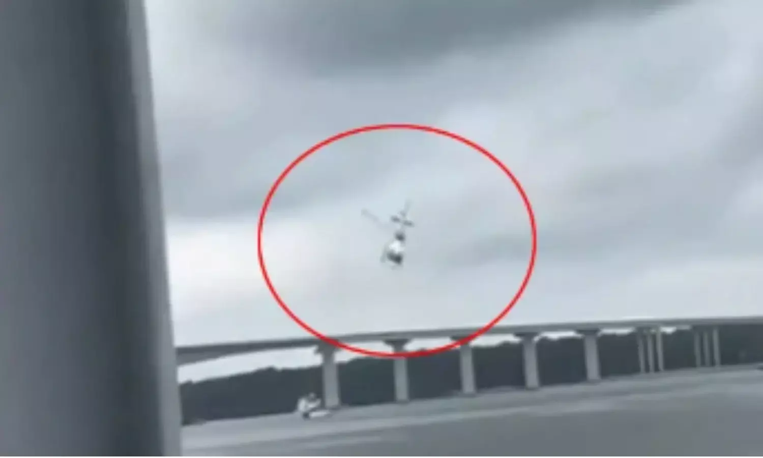 నదిలో కూలిపోయిన పోలీసుల హెలికాప్టర్
