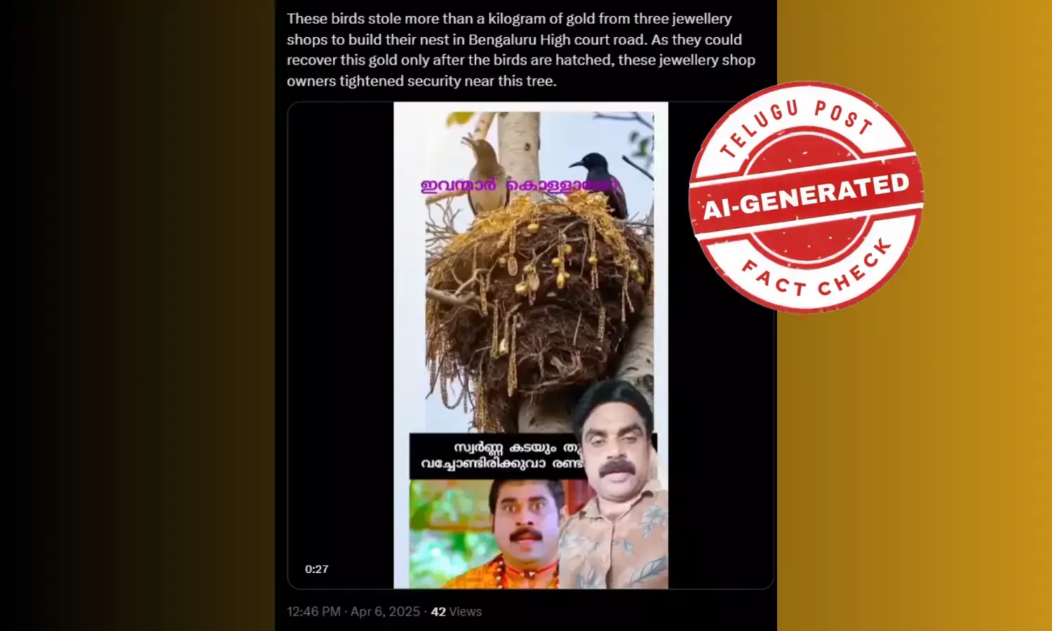 ಪಕ್ಷಿಗಳು ಒಂದು ಕೆಜಿಗಿಂತ ಹೆಚ್ಚು ಚಿನ್ನವನ್ನು ಕದ್ದಿವೆ ಎಂದು ಎಐ ವಿಡಿಯೋ ಹಂಚಿಕೆ