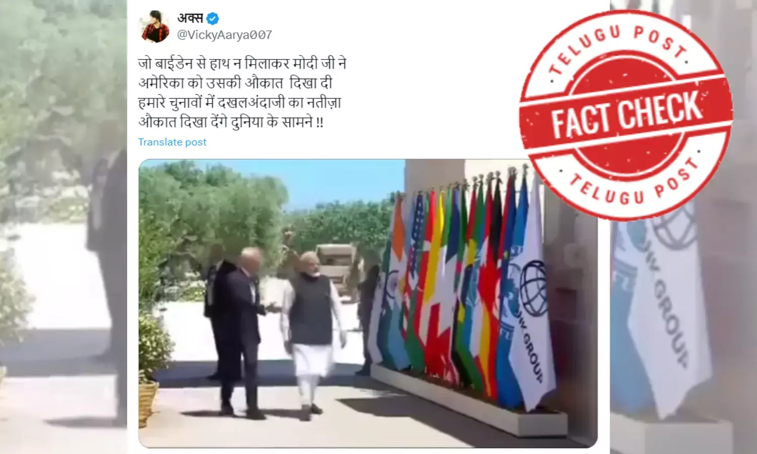 ಫ್ಯಾಕ್ಟ್ಚೆಕ್: ಭಾರತದ ಪ್ರಧಾನಿ ನರೇಂದ್ರ ಮೋದಿ ಜಿ7 ಶೃಂಗಸಭೆಯಲ್ಲಿ ಅಮೆರಿಕ ಅಧ್ಯಕ್ಷ ಜೋ ಬಿಡನ್ರೊಂದಿಗೆ ಹಸ್ತಲಾಘವ ಮಾಡಿದರು