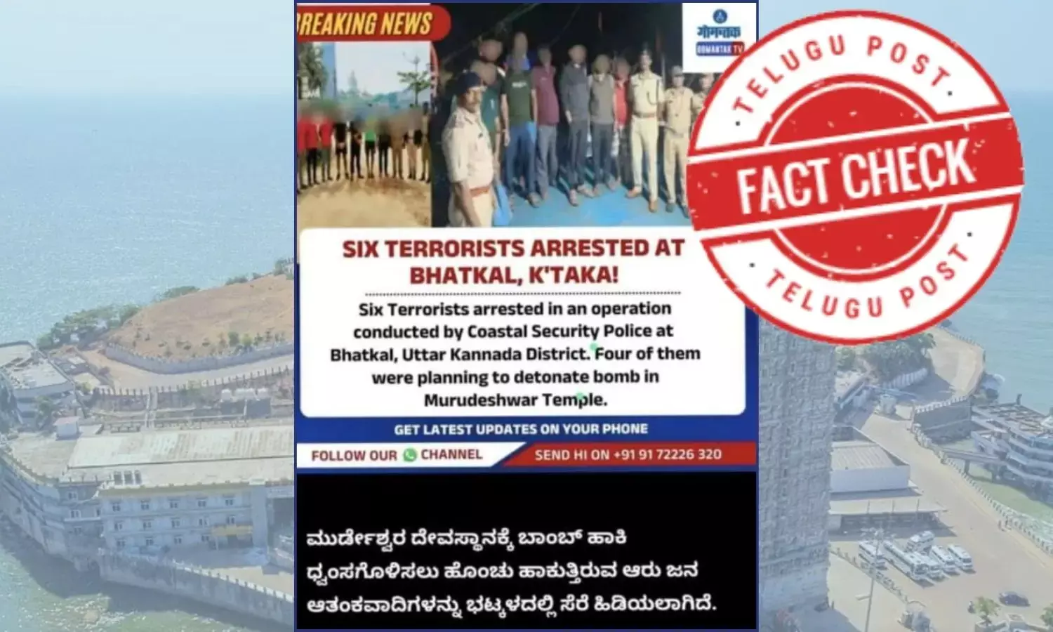 ಇತ್ತೀಚಿಗೆ ಸಾಮಾಜಿಕ ಜಾಲತಾಣದಲ್ಲಿ ವಿಶ್ವ ಪ್ರಸಿದ್ದ ಪ್ರವಾಸಿ ತಾಣವಾದ ಮುರುಡೇಶ್ವರ ದೇವಸ್ಥಾನಕ್ಕೆ ಬಾಂಬ್ ಹಾಕಿ ಧ್ವಂಸಗೊಳಿಸಲು ಉಗ್ರರು ಸಂಚು ರೂಪಿಸಿದ್ದ ಆರು ಉಗ್ರರರನ್ನು ಪೊಲೀಸರು ಬಂಧಿಸಿದ್ದಾರೆ ಎಂಬ ಶೀರ್ಷಿಕೆಯೊಂದಿಗೆ ಸಾಮಾಜಿಕ ಜಾಲತಾಣದಲ್ಲಿ ಈ ಸುದ್ದಿ ವೈರಲ್ ಆಗಿದೆ.