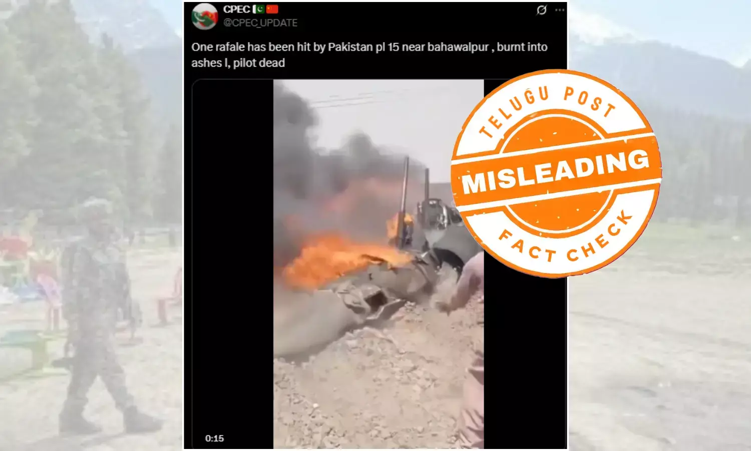ಮೇ 07, 2025ರಂದು ಎಕ್ಸ್ ಖಾತೆದಾರರೊಬ್ಬರು ʼOne rafale has been hit by Pakistan pl 15 near bahawalpur , burnt into ashes l, pilot deadʼ ಎಂಬ ಶೀರ್ಷಿಕೆಯನ್ನೀಡಿ ವಿಡಿಯೋವನ್ನು ಹಂಚಿಕೊಂಡಿದ್ದಾರೆ. ಶಿರ್ಷಿಕೆಯನ್ನು ಕನ್ನಡಕ್ಕೆ ಅನುವಾದಿಸಿದಾಗ ʼಬಹವಾಲ್ಪುರದ ಬಳಿ ಪಾಕಿಸ್ತಾನ ಪಿಎಲ್15 ರಫೇಲ್ ವಿಮಾನವೊಂದು ಡಿಕ್ಕಿ ಹೊಡೆದು ಸುಟ್ಟು ಭಸ್ಮವಾಗಿದೆ, ಪೈಲಟ್ ಸಾವುʼ ಎಂದು ಬರೆದಿರುವುದನ್ನು ನೋಡಬಹುದು.
