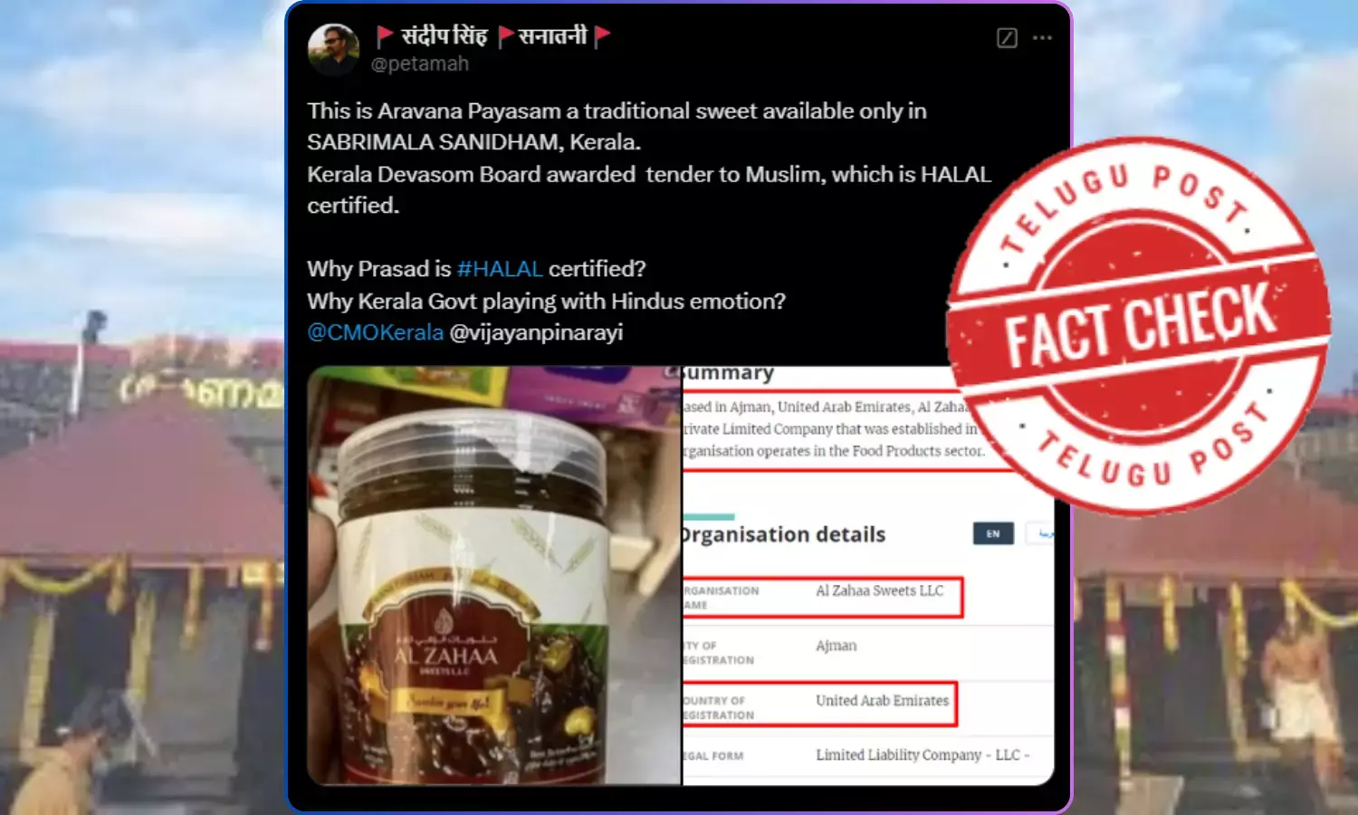 ಫ್ಯಾಕ್ಟ್ಚೆಕ್: ಶಬರಿಮಲೆ ದೇವಸ್ಥಾನದ ಅರಾವಣ ಪ್ರಸಾದವನ್ನು ಯುಎಇಯ ಅಲ್-ಜಹಾ ಕಂಪೆನಿ ತಯಾರಿಸುತ್ತಿಲ್ಲ