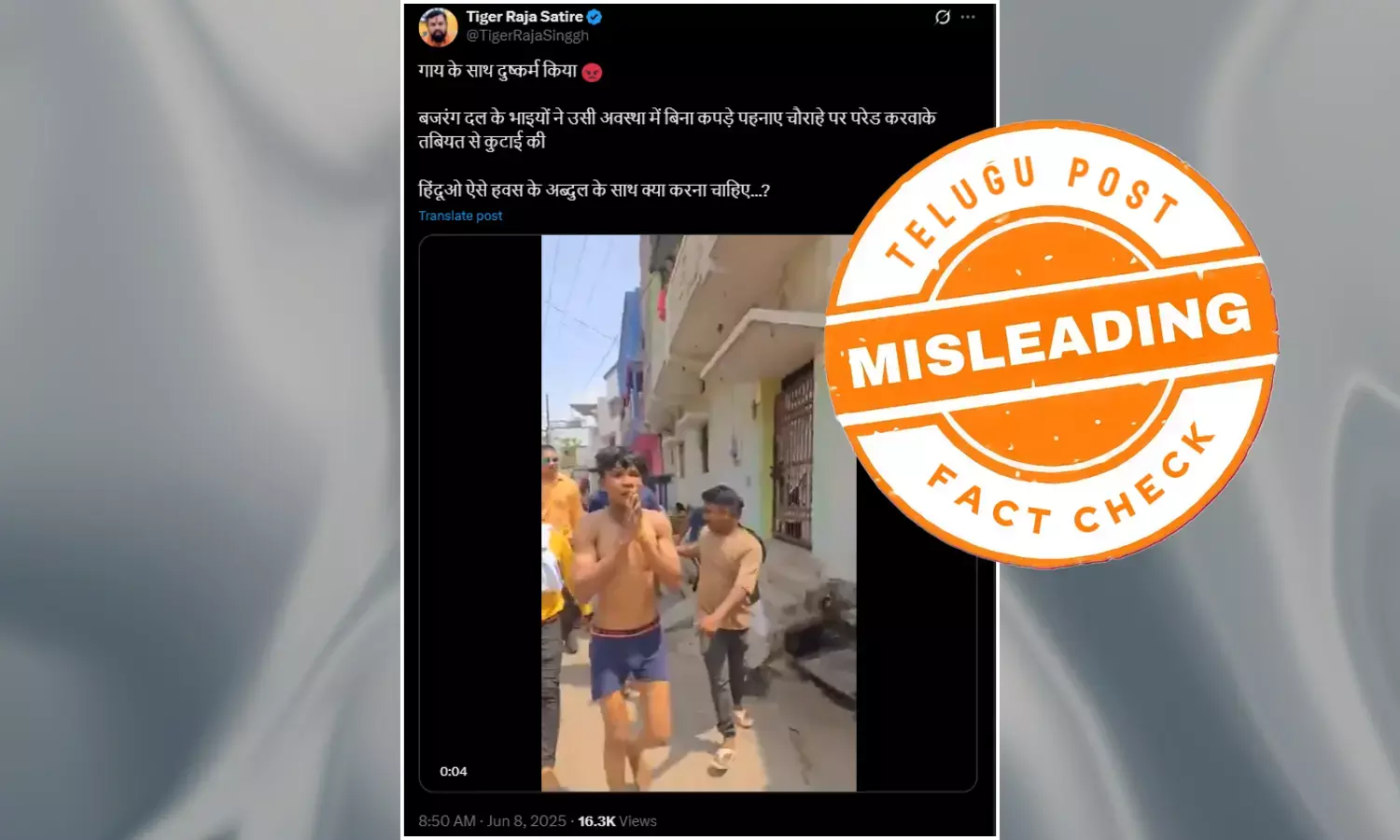 ಜೂನ್ 9, 2025ರಂದು ಎಕ್ಸ್ ಖಾತೆದಾರರೊಬ್ಬರು ವಿಡಿಯೋವನ್ನು ಹಂಚಿಕೊಂಡು ಮುಸ್ಲಿಂ ಯುವಕನೊಬ್ಬ ಹಸುವಿನ ಮೇಲೆ ಅತ್ಯಾಚಾರ ಮಾಡಿ ಸಿಕ್ಕಿಬಿದ್ದಿದ್ದಾನೆ. ಇದರಿಂದ ಕುಪಿತಗೊಂಡ ಜನರು ಆ ಯುವಕನನ್ನು ಥಳಿಸಿ ಮೆರವಣಿಗೆ ಮಾಡಿದ್ದಾರೆ ಎಂದು ವಿಡಿಯೋವನ್ನು ಹಂಚಿಕೊಂಡು ಆಕ್ರೋಶ ವ್ಯಕ್ತ ಪಡಿಸಿದ್ದಾರೆ.
