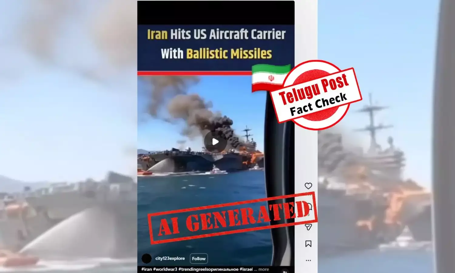 ഫാക്ട് ചെക്ക്: ഇറാൻ യുഎസ് വിമാനവാഹിനിക്കപ്പൽ ആക്രമിച്ചോ? പ്രചരിക്കുന്ന വീഡിയോ എഐ നിർമിതം