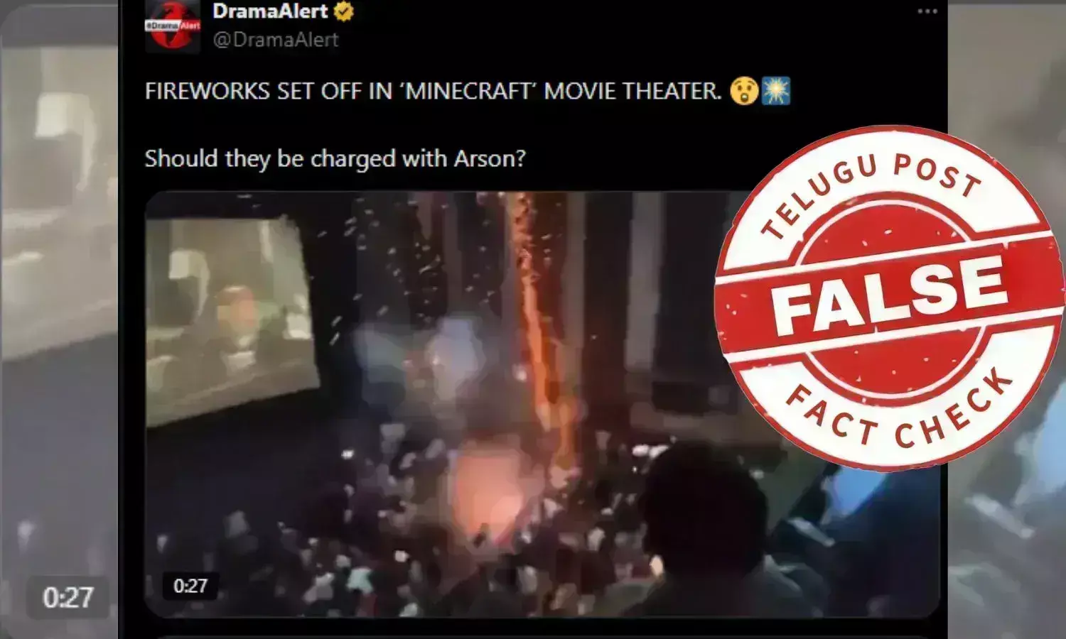 എ മൈൻക്രാഫ്റ്റ് മൂവീ പ്രദർശനത്തിനിടെ തിയറ്ററിൽ പടക്കം പൊട്ടിച്ച് ആരാധകരെന്ന് പ്രചാരണം