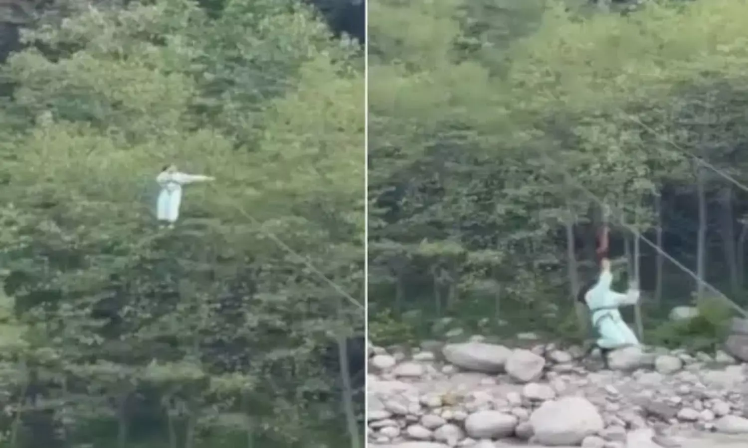 జిప్ లైన్ మీద వెళుతుండగా.. అనుకోని ప్రమాదం