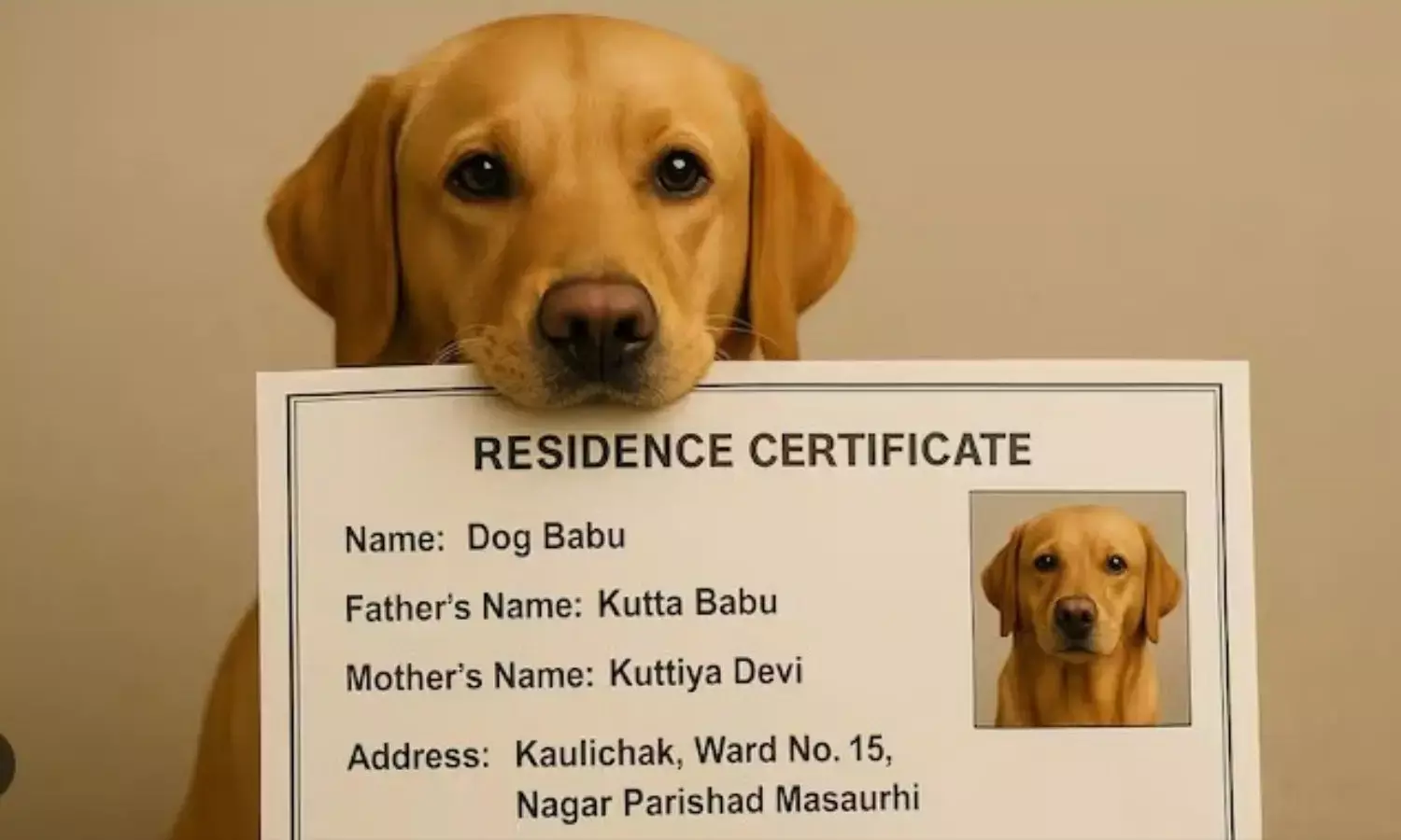 బీహార్లో ఓ విచిత్రమైన ఘటన చోటుచేసుకుంది. 'డాగ్ బాబు' అనే పేరుగల ఒక గోల్డెన్ రిట్రీవర్ జాతికి చెందిన కుక్కకు నివాస ధృవీకరణ పత్రం జారీ చేశారు. బీహార్లోని మసౌర్హి డివిజన్లో జులై 24వ తేదీతో ఉన్న నివాస ధ్రువీకరణ పత్రంలో శునకం పేరు 'డాగ్ బాబు'గా నమోదు చేశారు. అలాగే దాని తండ్రి పేరుగా 'కుత్తా బాబు', తల్లి పేరుగా 'కుతియా దేవి' అని ఉంది. ఈ సర్టిఫికేట్పై డిజిటల్ రూపంలో ఉండగా, దానిపై రెవెన్యూ అధికారి సంతకం కూడా ఉంది. ఈ పత్రం బయటకు వచ్చిన కొద్ది నిమిషాల్లోనే సోషల్ మీడియాలో వైరల్ అయింది. ఈ విషయం ఉన్నతాధికారుల దృష్టికి వెళ్లగా వెంటనే స్పందించిన అధికారులు ఈ సర్టిఫికేట్ను రద్దు చేశారు.