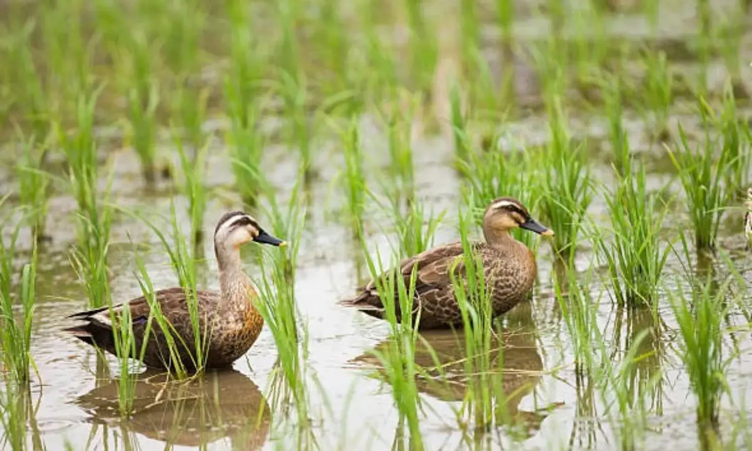 వరి పొలాల్లో ముఖ్యంగా వరి కోతల తర్వాత బాతులు తిరుగాడుతుంటాయి. అనేక వారాల పాటు తిరుగుతూ పురుగూ పుట్ర, కలుపు, పురుగులను తింటాయి. ఆ తర్వాత వేసే వరి పంటకు బలాన్నిస్తాయి. బాతులు పొలాల్లో తిరిగే సమయాల్లో అవి విసర్జించే రెట్ట నేలను నత్రజని తదితర సహజపోషకాలతో సారవంతం చేస్తుంది. కలుపు మొక్కల్ని తినెయ్యటంతో పాటు బాతులు నేలను గోళ్లతో తిరగేస్తాయి. పంట మొక్కల వేర్లకు గాలి తగిలేలా చేస్తాయి. బాతులు ఎంతో మేలు చేస్తూ ఉండడంతో విదేశాల్లోనూ వరి సేద్యంలో కీలక భూమికను పోషిస్తున్నాయి.