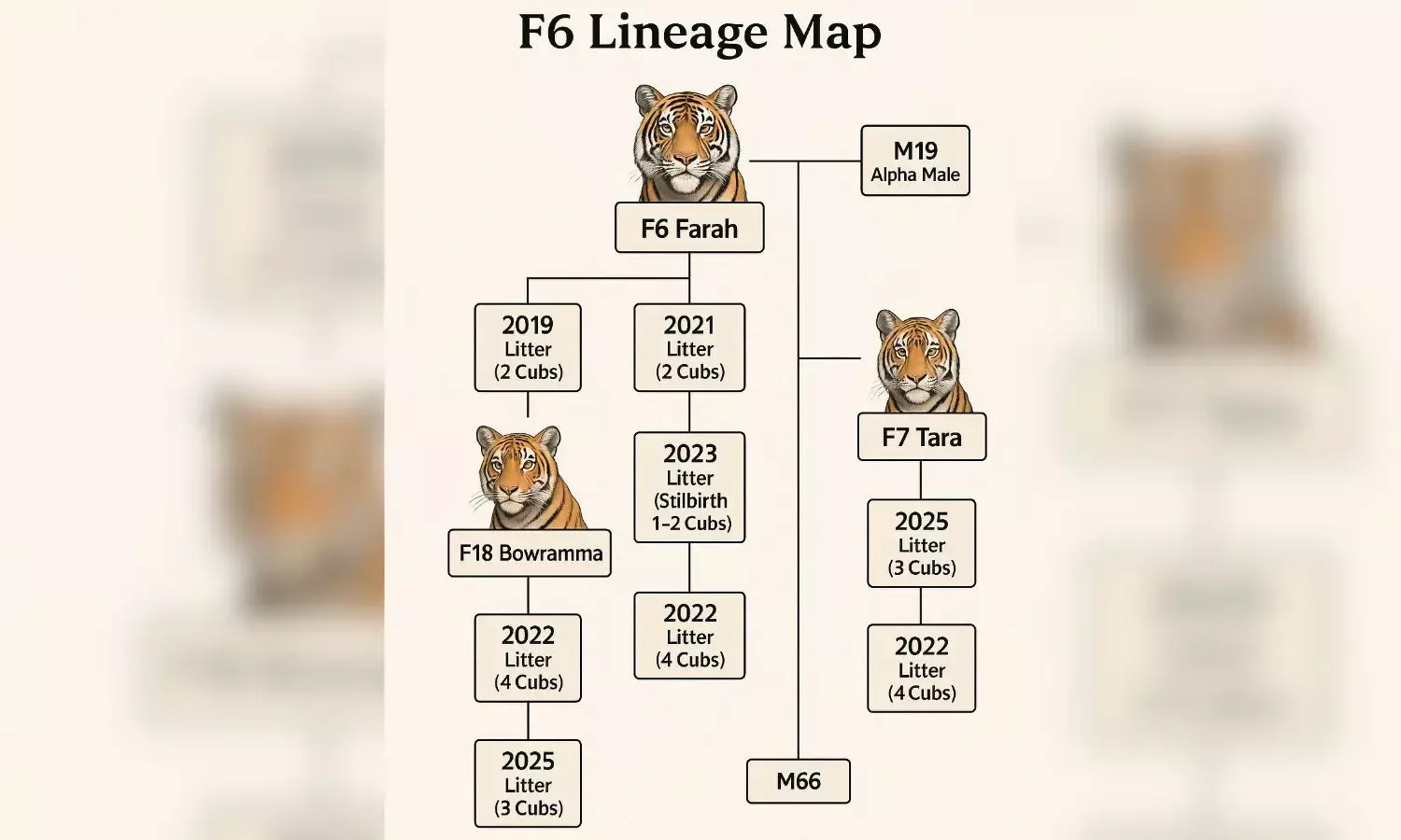 ఒకప్పుడు కేవలం మూడు పులులకు నిలయంగా ఉన్న తెలంగాణలోని అమ్రాబాద్ టైగర్ రిజర్వ్లో ఇప్పుడు 36 పులులు ఉన్నాయి. ఈ మార్పుకు కారణం ఓ సూపర్ మామ్. F6 అని పేరున్న ఫరా అనే ఆడ పులి 2019లో రెండు పిల్లలకు జన్మనిచ్చింది. అప్పటి నుండి ఫరా ఈ రిజర్వ్లో తిరుగులేని మాతృమూర్తిగా మారింది. ఆమె రక్తసంబంధం ఇప్పుడు టైగర్ రిజర్వ్లో నివసించే పులులలో దాదాపు సగం వరకు ఉంది. ఫరా పులుల జనాభాను పెంచడానికి చేసిన సహకారం అసాధారణమైనది. ఆమె మొత్తం నాలుగు సార్లు గర్భం దాల్చింది. 2025లో ఆమె కుటుంబంలోకి మరో మూడు పిల్లలు వచ్చాయి. ఫరా కుమార్తె F18 కు 2022లో నాలుగు పిల్లలు పుట్టాయి. F18 కు స్థానిక గిరిజన చెంచులు బౌరమ్మ అని పేరు పెట్టారు.