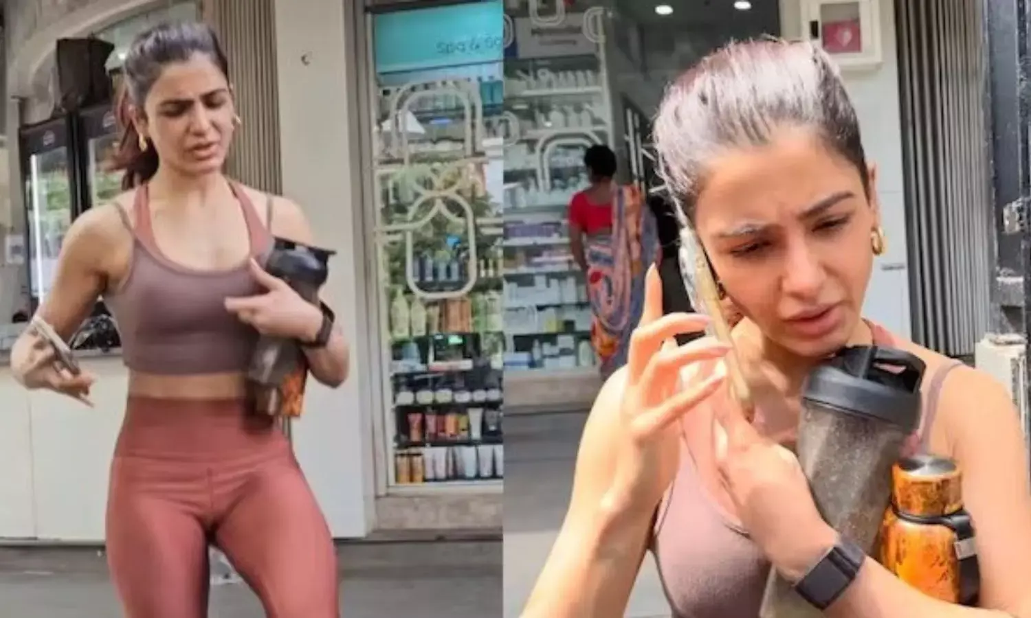 సమంత రూత్ ప్రభు జిమ్ నుండి బయటకు వస్తున్నప్పుడు ముంబైలో ఫోటోగ్రాఫర్లు చుట్టుముట్టారు.