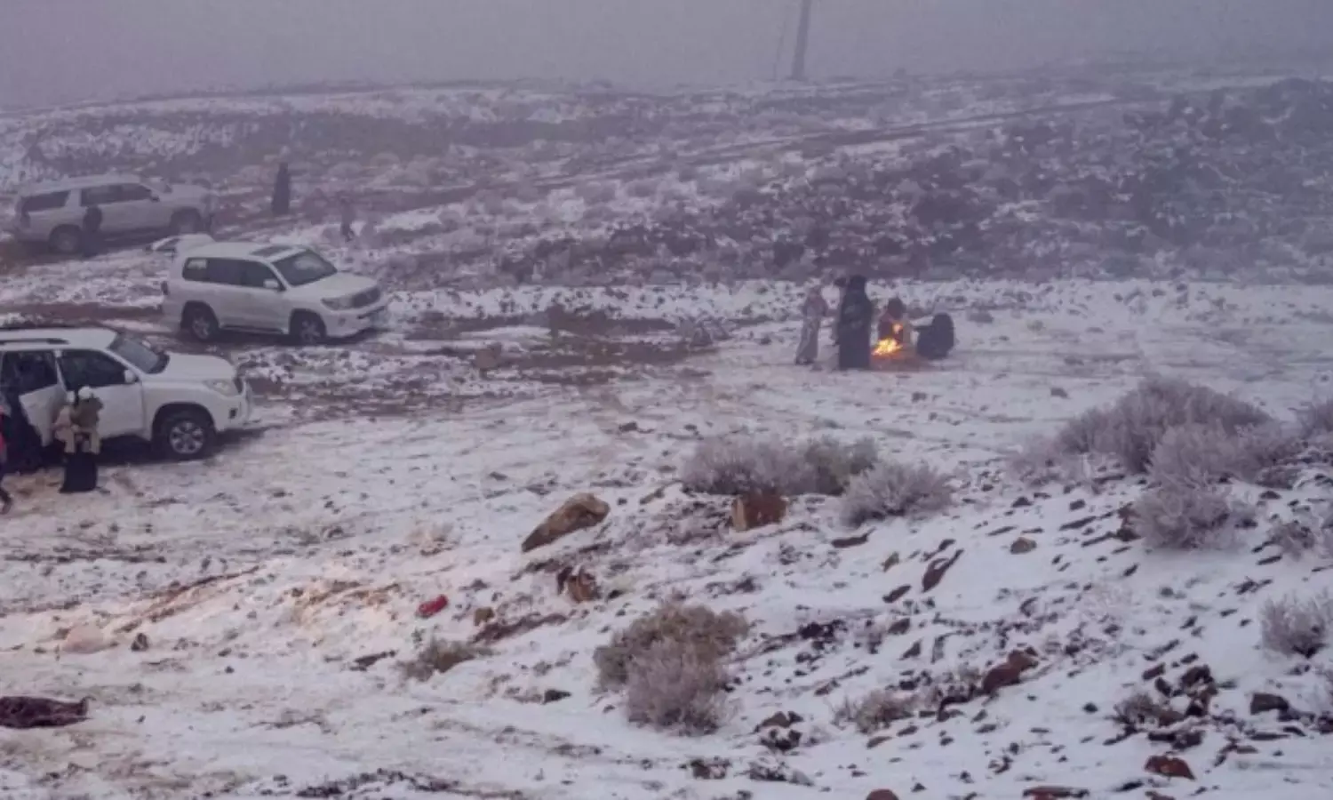 సౌదీ అరేబియాను మంచు దుప్పటి కప్పేసింది. కొన్ని ప్రాంతాల్లో భారీ వర్షపాతం నమోదైంది.