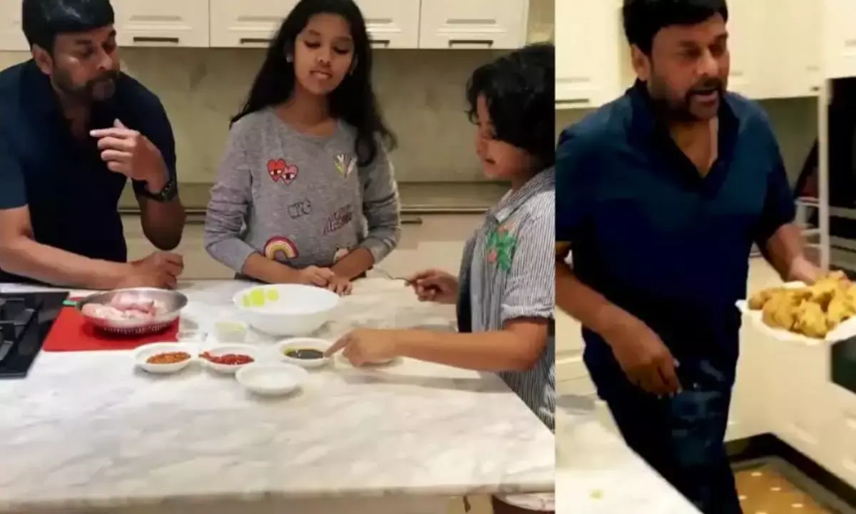 చిరంజీవి సినిమాల్లో నెంబర్ వన్ హీరో. మరి వంటల్లో కూడా చిరు నెంబర్ వన్. అప్పుడప్పుడు గరిట తిప్పే చిరంజీవి లాక్ డౌన్ లో చిరంజీవి తన తల్లి కోసం ఉప్మా పెసరట్టు వేసి పెట్టడం దగ్గరనుండి.. ఆయన చాలా రకాల డిషెస్ ఇంట్లో వాళ్ళ కోసం చేసిపెట్టారు. మరి సండే ఫన్ డే అన్నట్టుగా మానవరాళ్లతో.. చిరు సండే బోర్ కొడుతోంది అంటే.. మనవరాళ్లు ఇద్దరూ కె ఎఫ్ సి తినాలనుంది అనగానే.. బయట తిళ్ళు తింటే ఆరోగ్యం పాడవుద్ది…. ఎందుకు మనమే ఇంట్లో చేద్దామంటూ మానవరాళ్లతో కలిసి కె ఎఫ్ సి చికెన్ వండేశాడు చిరు.