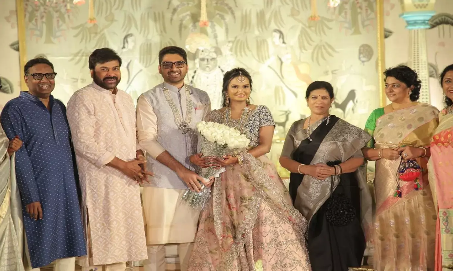 పెళ్లికి హాజరైన సినీ ప్రముఖుల్లో మెగాస్టార్ చిరంజీవి దంపతులు, నిర్మాత అల్లు అరవింద్, బండ్ల గణేశ్ ఉన్నారు. అలాగే తెలంగాణ