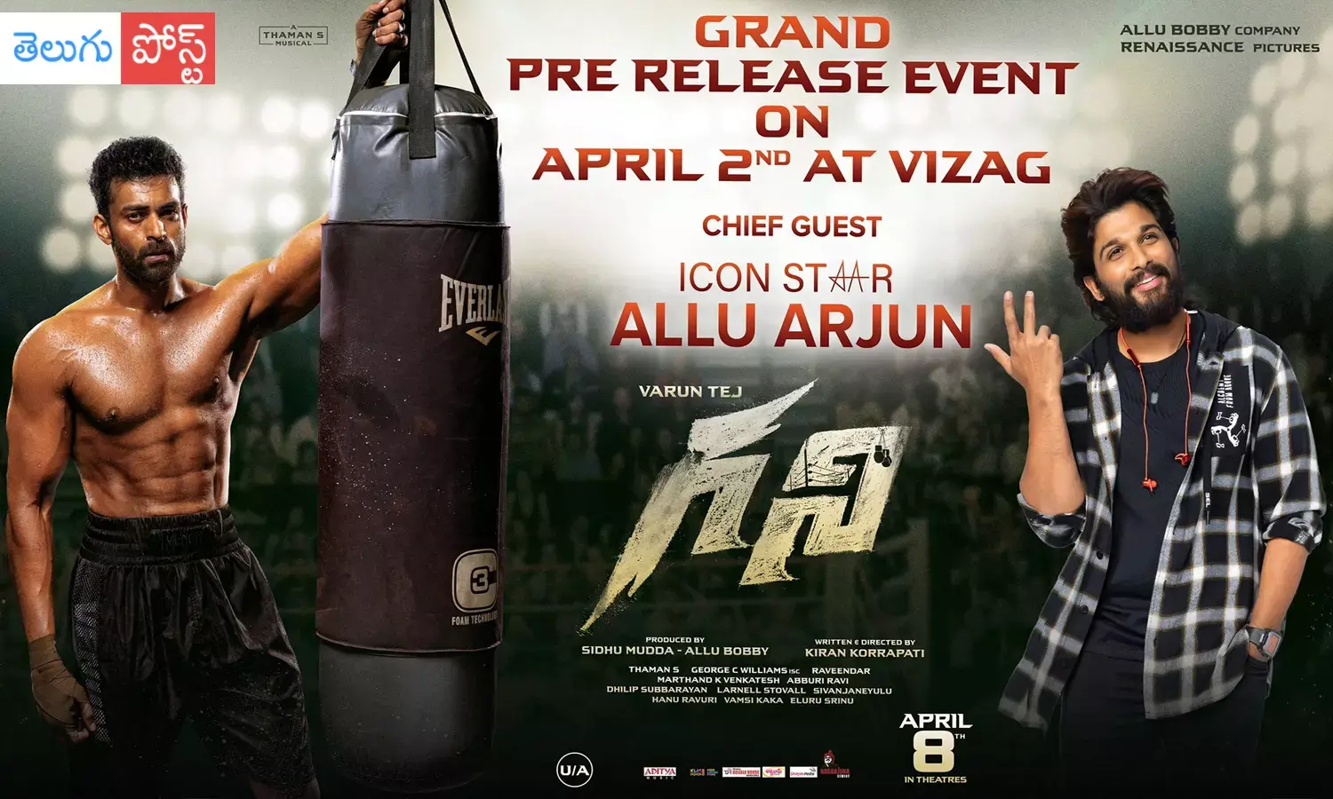 తాజాగా గని ప్రీ రిలీజ్ ఈవెంట్ డేట్, వేదికను ప్రకటించారు మేకర్స్. ఏప్రిల్ 2వ తేదీన విశాఖపట్నంలో సినిమా ప్రీ రిలీజ్..