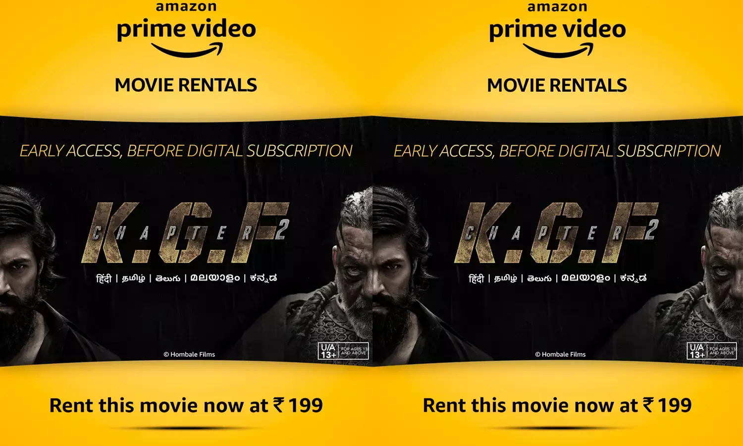 ఈ సినిమా ఇప్పుడు ప్రైమ్ వీడియోలో అద్దెకు అందుబాటులో ఉంది. ప్రైమ్ వీడియోలో 'మూవీ రెంటల్స్' విభాగంలో కేజీఎఫ్-2 ను మనం చూడవచ్చు. సోమవారం నుండి ప్రైమ్ మెంబర్లు, నాన్-ప్రైమ్ మెంబర్లు ఇద్దరూ సినిమాని ప్రైమ్ వీడియోలో రూ.199కి అద్దెకు తీసుకునే అవకాశం ఇచ్చారు. ఈ పాన్-ఇండియా బ్లాక్బస్టర్ని ఇకపై స్వంత ఇళ్లలోనే ఆనందించవచ్చు. ఈ చిత్రం కన్నడ, హిందీ, తమిళం, తెలుగు మరియు మలయాళం.. ఇలా ఐదు భాషలలో HD క్వాలిటీతో అద్దెకు అందుబాటులో ఉంటుంది.