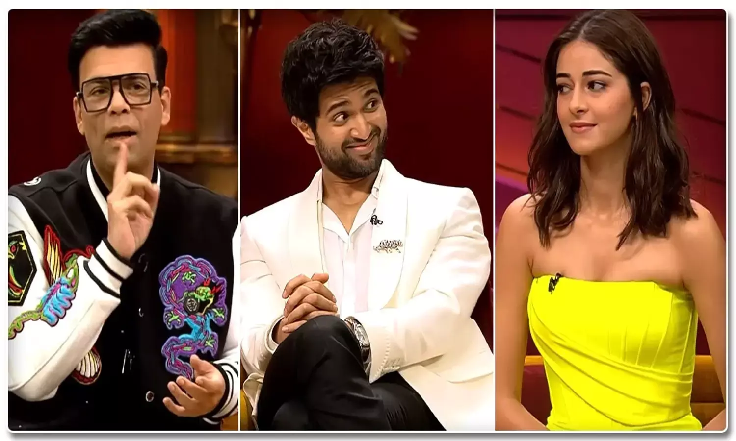 కాఫీ విత్ కరణ్ సీజన్ 7 ప్రస్తుతం ప్రసారం అవుతూ ఉన్న సంగతి తెలిసిందే..! ఇప్పటికే మూడు ఎపిసోడ్ లలో ఆలియా, రణవీర్, అక్షయ్ కుమార్, సమంత, జాన్వీ కపూర్, సారా అలీ ఖాన్.. సందడి చేశారు. ఎపిసోడ్ 4 లో అనన్య పాండే, విజయ్ దేవరకొండ కనిపించనున్నారు. ఈ ఇద్దరు స్టార్లు ఉన్న ప్రోమో.. విడుదలైంది. ఈ ప్రోమో చూస్తే విజయ్ దేవరకొండ సెక్స్ లైఫ్ మీద కరణ్ జోహార్ పలు ప్రశ్నలు వేశాడు. ఇక అనన్య పాండే, ఆదిత్య రాయ్ కపూర్ మధ్య ఏమి జరుగుతుందో దాని గురించి తెలుసుకోవాలని కూడా ప్రశ్నలు వేశాడు. విజయ్ దేవరకొండను.. నువ్వు లాస్ట్ టైమ్ సెక్స్ ఎప్పుడు చేశావ్..? త్రీసమ్ అంటే ఇష్టమా.. వంటి ప్రశ్నలను వేసి.. తన షో ఉద్దేశ్యం ఏమిటో మరోసారి బయటపెట్టాడు.
