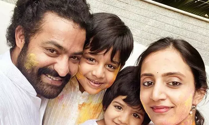 #RRR సినిమా షూటింగ్ లో బిజీగా గడుపుతున్న ఎన్టీఆర్ ఎక్కడైనా కనబడ్డాడు అంటే చాలు.. ఆ పిక్ ని నిమిషాల్లో సోషల్ మీడియాలో వైరల్ చేస్తున్నారు ఎన్టీఆర్ ఫ్యాన్స్. రెండేళ్లదాకా తమ హీరో సినిమా రాదన్న బాధ ఉన్నప్పటికీ.. ఉన్న సంతోషాన్ని మాత్రం చక్కగా వాడుకుంటున్నారు. మొన్నటికి మొన్న చాలా బరువు తగ్గి సన్నగా మారిన ఎన్టీఆర్ షేర్వాణీ లుక్ సోషల్ మీడియాలో ఎలా వైరల్ అయ్యిందో తాజాగా యంగ్ టైగర్ ఎన్టిఆర్ తన కుటుంబ సభ్యులతో కలిసి హోలీని జరుపుకుంటు.. దానికి సంబందించితిన ఓ క్యూట్ ఫ్యామిలీ పిక్ ని సోషల్ మీడియాలో పోస్ట్ చేసాడు. .దానితో ఎన్టీఆర్ అభిమానుల ఆనందానికి ఫుల్ స్టాప్, కామా లేకుండా పోయింది. భార్య లక్ష్మీ ప్రణతి, కుమారులు అభయ్ రామ్, భార్గవ్ రామ్లతో కలిసి హోలీ పండుగను జరుపుకునే పిక్ ని ఎన్టిఆర్ పోస్ట్ చేశారు. ఈ పిక్ సోషల్ మీడియాలో వైరల్ అవుతోంది.