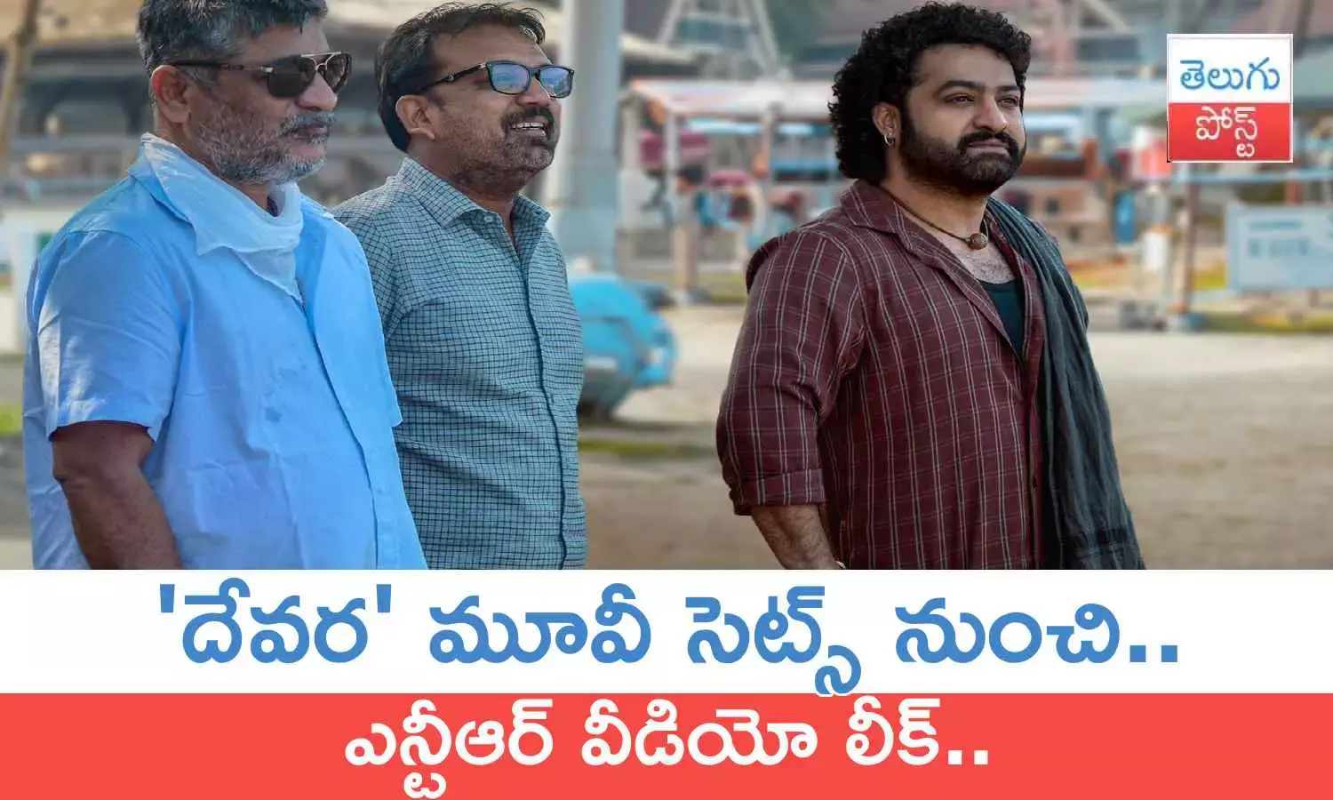 గోవా షూటింగ్ జరుపుకుంటున్న 'దేవర' మూవీ సెట్స్ నుంచి ఎన్టీఆర్ వీడియో లీక్ అయ్యింది.