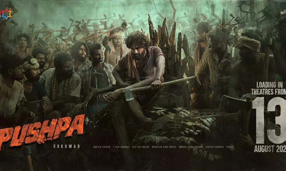అది పుష్ప పాన్ ఇండియా మూవీని ఆగష్టు 13 2021 న థియేటర్స్ లో రిలీజ్ చేయ్యబోతున్నట్టుగా రిలీజ్ డేట్ ఇచ్చేసి షాకిచ్చేసారు. RRR ఎంతో హైప్ క్రియేట్ చేస్తూ రిలీజ్ డేట్ ఇవ్వగా అల్లు అర్జున్ పుష్ప టీం మాత్రం ఎలాంటి హడావిడి హంగామా లేకుండా పుష్ప డేట్ వదిలింది. ఆగష్టు 13 న అంటే మరో ఆరు నెలల్లో పుష్ప సినిమా థియేటర్స్ లో దిగబోతుంది. నిజంగా మెగా ఫాన్స్ కి, అల్లు అర్జున్ ఫాన్స్ ఇది పండగ లాంటి వార్తే. ఆచార్య, కెజిఎఫ్, రాధేశ్యామ్ డేట్ కోసం ఎదురు చూస్తున్న ప్రేక్షకులు పుష్ప సినిమా ఈ ఏడాదికి ఉండకపోవచ్చు.. పాన్ ఇండియా మూవీ అందులో సుకుమార్ దర్శకుడు కాబట్టి షూటింగ్ లేట్ గానే అవుతుంది అనుకుంటున్న తరుణంలో అదిరి పోయే పోస్టర్ తో పుష్ప టీం ఇలా డేట్ అనౌన్స్ చేసి అందరికి షాకిచ్చేసింది