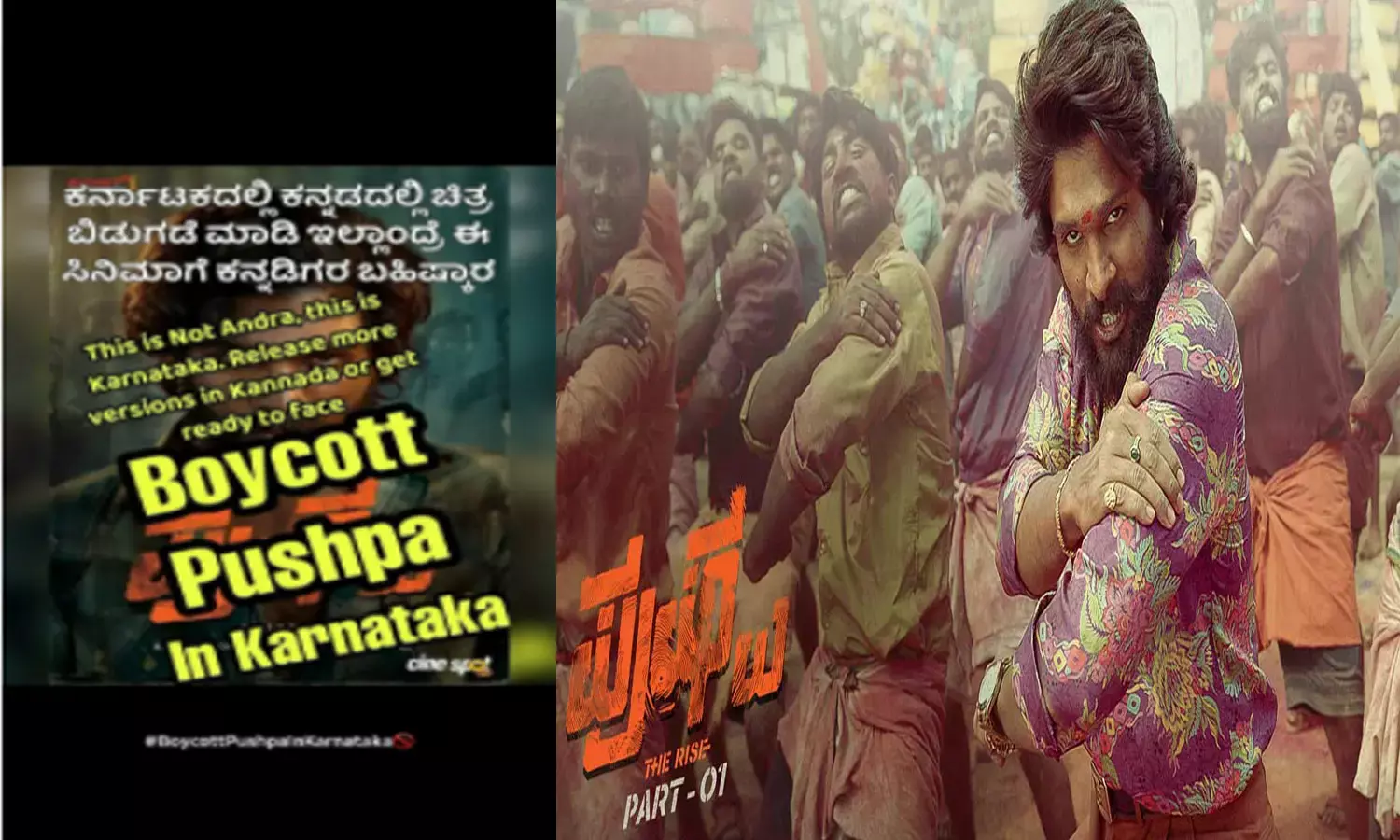 అఖండ సినిమా ఇచ్చిన జోష్ తో థియేటర్లలో సందడి చేసేందుకు రెడీ అయింది పుష్ప- ది రైజ్ సినిమా. ఇంకా మార్నింగ్ షో కూడా పడకుండానే బన్నీ అభిమానుల నుంచి పుష్ప టీమ్ కు ఊహించని ఎదురుదెబ్బ తగిలింది. బాయ్ కాట్ పుష్ప పేరుతో ట్రెండింగ్ జరుగుతోంది. తమ భాషను అవమానించారంటూ కన్నడిగులు పుష్ప టీమ్ పై ఆగ్రహం వ్యక్తం చేస్తున్నారు. #BoycottPushpaInKarnataka అంటూ ట్రెండింగ్ చేశారు. మొత్తం ఏడు భారతీయ భాషల్లో పాన్ ఇండియా సినిమా రిలీజ్ అవుతున్న పుష్ప సినిమాను.. కన్నడలోనూ డబ్ చేశారు. అయితే.. ఇక్కడే అసలు చిక్కొచ్చిపడింది. కర్ణాటకలో పుష్ప సినిమాను కన్నడ భాషలో కంటే.. తెలుగు భాషలోనే ఎక్కువగా రిలీజ్ అవుతోంది. దీంతో కన్నడ బన్నీ అభిమానులు నొచ్చుకున్నారు. బాయ్ కాట్ పుష్ప అంటూ సోషల్ మీడియాలో ట్రెండ్ చేస్తున్నారు.
