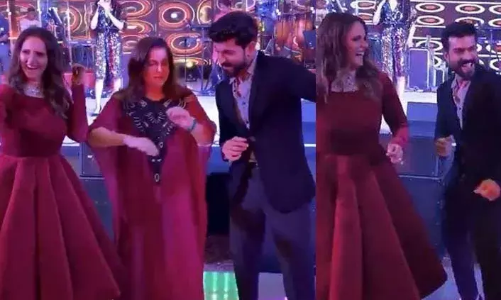 అయితే ఈ పెళ్ళిలో ప్రధాన ఆకర్షణగా నిలిచిన రామ్ చరణ్ తన బెస్ట్ ఫ్రెండ్ సానియా మీర్జా, ఫరా ఖాన్ తో స్టేజ్ మీద వేసిన స్టెప్స్ ఉన్న వీడియో ఒకటి సోషల్ మీడియాలో వైరల్ అయ్యింది. రామ్ చరణ్ తో పాటు సానియా మీర్జా మరియు దర్శకురాలు ఫరా ఖాన్ లు డాన్స్ చేస్తూ అందరిని ఉర్రుతలూగించారు. మరి రామ్ చరణ్, సానియా, ఫరా ఖాన్ కలిసి ఎంజాయ్ చేస్తూ వేసిన డాన్స్ ఇప్పుడు నెట్టింట్లో వైరల్ అయ్యింది. రామ్ చరణ్ అభిమానులైతే చరణ్ ఎక్కడున్నా డాన్స్ కింగ్ అంటూ పండగ చేసుకుంటున్నారు.