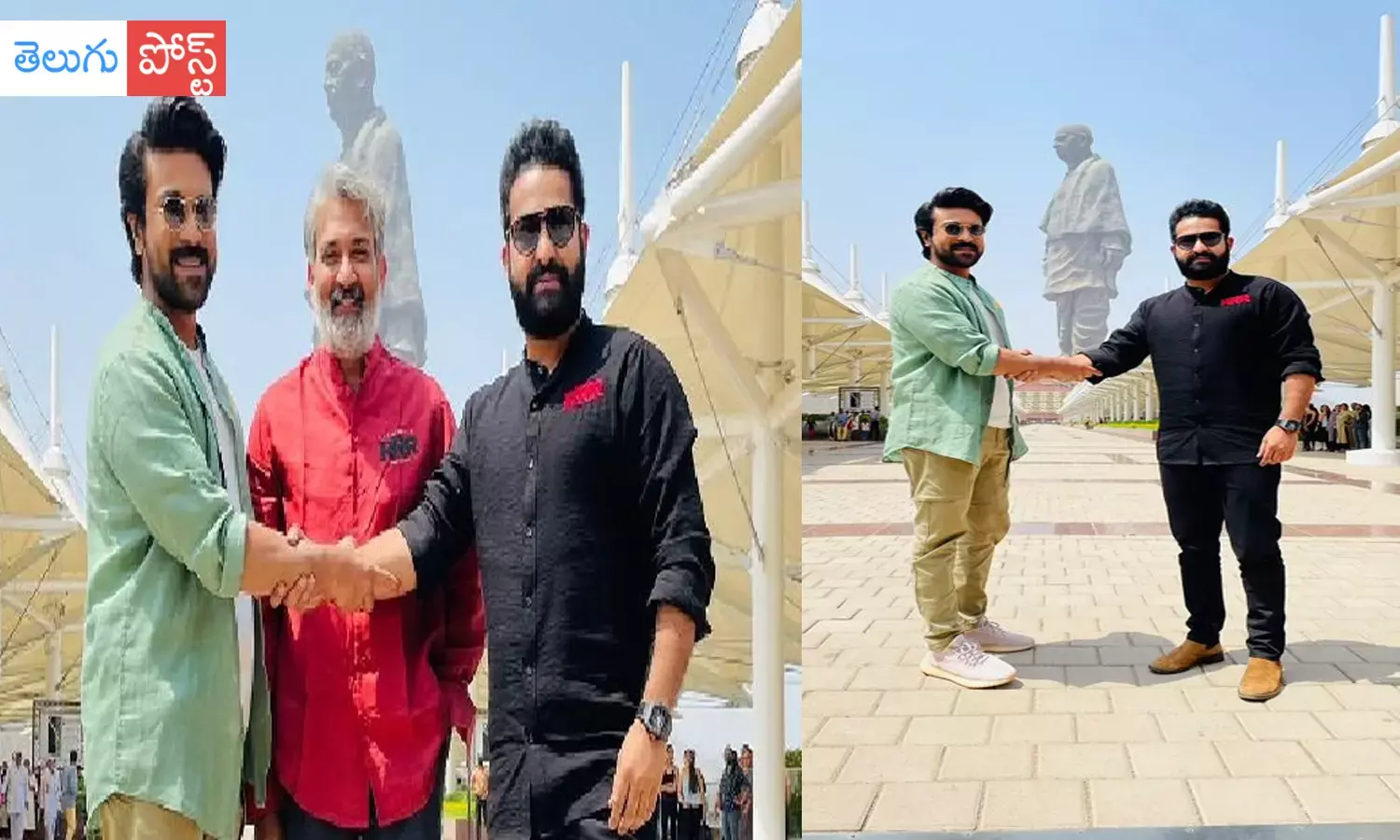 ఉక్కుమనిషితో ఆర్ఆర్ఆర్ టీమ్.. కెవాడియాలో చెర్రీ, తారక్ సందడి