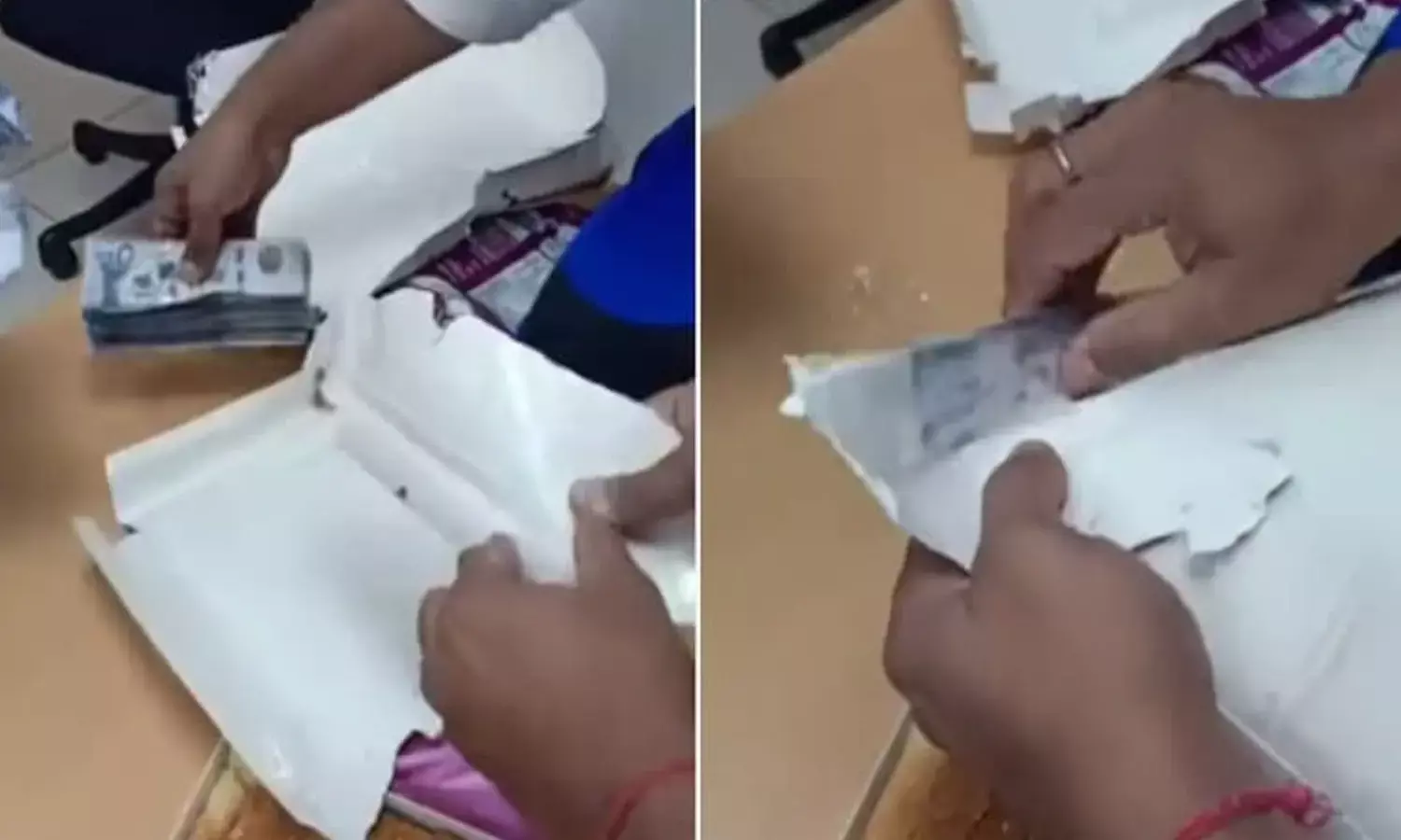బ్యాగులో స్వీట్ బాక్సులు, దుస్తులు తప్ప ఏమీ కనిపించలేదు. సమాచారం తప్పై ఉండదన్న అనుమానంలో స్వీట్ బాక్సులను తెరిచి.. వాటి అట్టపెట్టెలను చింపి చూస్తే.. అసలు విషయం బయటపడంది. ఎవరూ గుర్తించలేని విధంగా స్వీట్ బాక్స్ అట్టపెట్టెల్లో సౌదీ కరెన్సీని పెట్టుకొచ్చాడు ఆ ప్రయాణికుడు. అతని వద్ద స్వాధీనం చేసుకున్న సౌదీ కరెన్సీ విలువ రూ.54 లక్షలుగా ప్రకటించారు. స్వీట్ బాక్స్ అట్ట పెట్టె ఫోల్డింగ్ లలో కనిపించని విధంగా నోట్లను మడిచి పెట్టడం గమనార్హం. ఇప్పుడీ వీడియో నెట్టింట వైరల్ అవుతోంది.