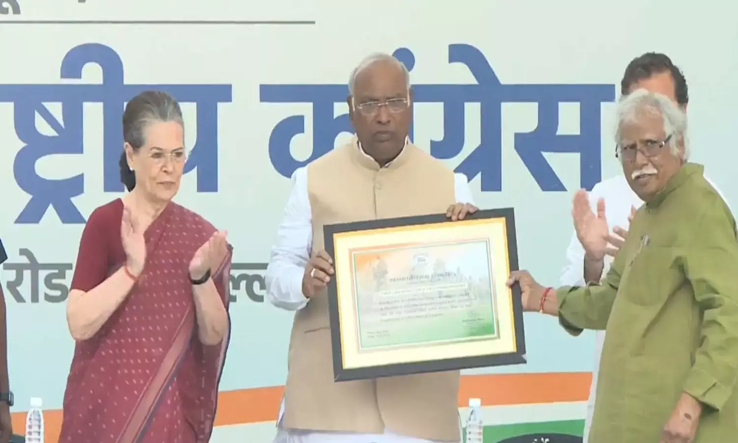 మల్లికార్జున ఖర్గే నాయకత్వంలో కాంగ్రెస్ పార్టీ మరింత ముందుకు వెళుతుందని కాంగ్రెస్ చీఫ్ సోనియా గాంధీ అన్నారు. ఖర్గే పదవీ బాధ్యతల స్వీకారం సందర్భంగా ఆమె మాట్లాడారు. అంతకు ముందు ఎన్నికల అధికారి మిస్త్రీ నుంచి ఆయన అధికారికంగా అధ్యక్షుడిగా ఎన్నికయినట్లు లేఖ అందుకున్నారు. పార్టీ ముందు ఎన్నో సవాళ్లు ఉన్నాయన్నారు. ఖర్గేకు తన మద్దతు ఎప్పుడూ ఉంటుందని సోనియా తెలిపారు. ఖర్గే అనుభవం ఉన్న నాయకుడని ఆమె ప్రశంసించారు. కాంగ్రెస్ అధ్యక్షుడిగా ఎన్నికయిన ఖర్గేకు ఆయన అభినందనలు తెలిపారు.