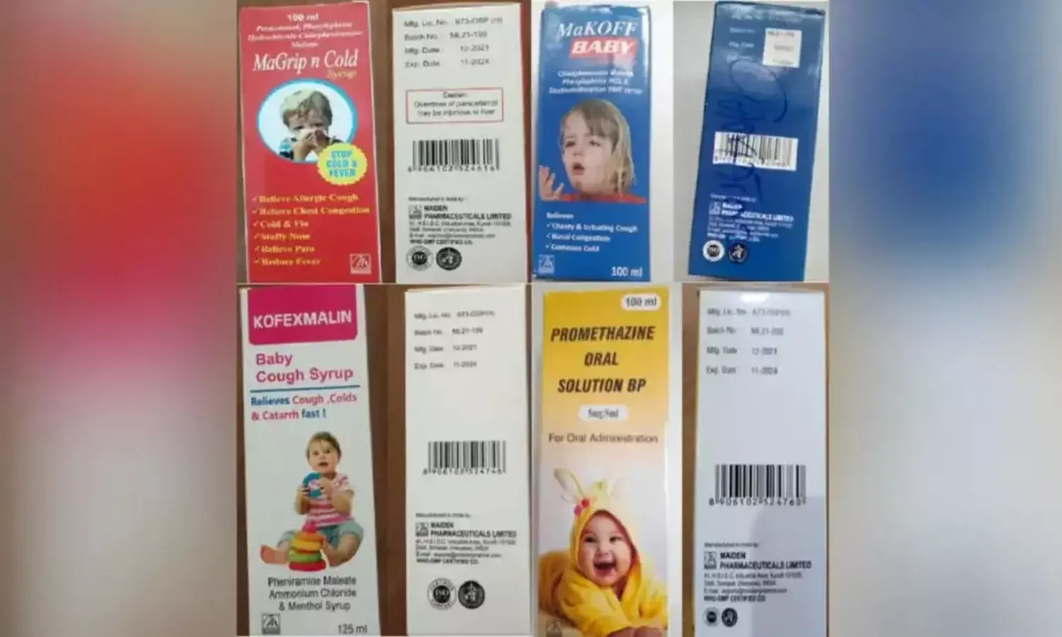 గాంబియా దేశంలో పిల్లల మరణాలకు భారత్ లో తయారు చేసిన దగ్గు మందులే కారణమని ప్రపంచ ఆరోగ్య సంస్థ చెప్పడంతో ఆ దగ్గు సిరప్ల నమూనాలను పరీక్షల కోసం పంపినట్లు కేంద్ర ఆరోగ్య మంత్రిత్వ శాఖ గురువారం తెలిపింది. ఈ ఉత్పత్తులు కేవలం ఎగుమతుల కోసం మాత్రమే తయారు చేశారని.. భారతదేశంలో విక్రయించడం లేదని తెలిపారు. నాలుగు ఔషధాలకు సంబంధించి.. హర్యానాకు చెందిన మైడెన్ ఫార్మాస్యూటికల్స్ తయారు చేసిన అదే బ్యాచ్ నమూనాలను ప్రయోగశాలకు పరీక్ష కోసం పంపినట్లు మంత్రిత్వ శాఖ పేర్కొంది. మెయిడన్ ఫార్మాస్యూటికల్ తయారు చేసిన ప్రొమెథజైన్ ఓరల్ సొల్యూషన్, కొఫెక్స్ మాలిన్ బేబీ కాఫ్ సిరప్, మేకాఫ్ బేబీ కాఫ్ సిరప్, మాగ్రిప్ ఎన్ కోల్డ్ సిరప్ ఈ ప్రమాదానికి కారణమైనట్టు తెలుస్తోంది.