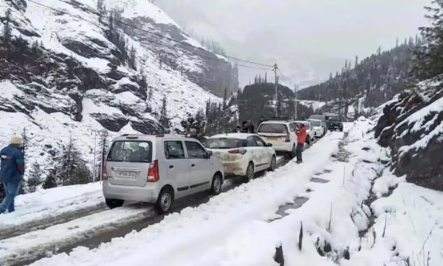 జమ్మూకశ్మీర్లోని ఉధంపూర్ జిల్లాలో భారీగా మంచు కురుస్తుంది