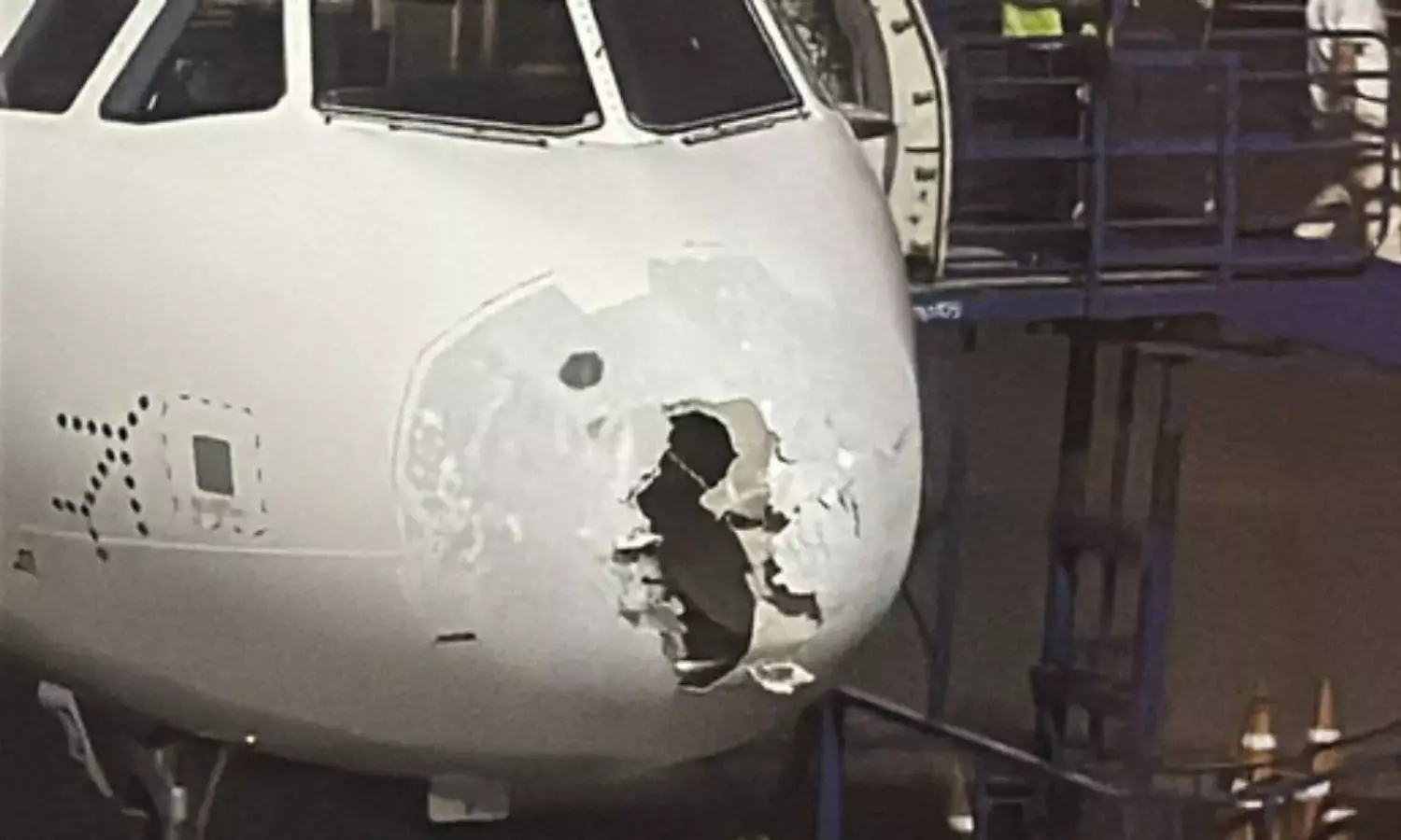 పైలట్ అత్యవసరంగా లాండింగ్ చేయాలంటావు శ్రీనగర్ ఎయిర్ ట్రాఫిక్ కంట్రోల్ను సంప్రదించాడు. తీవ్ర ప్రతికూల వాతావరణ పరిస్థితుల మధ్య బుధవారం సాయంత్రం 6.30కు విమానాన్ని సురక్షితంగా లాండ్ చేయడంతో అంతా ఊపిరి పీల్చుకున్నారు. విమానం ముందు భాగం పూర్తిగా ధ్వంసమైంది. అది లాండింగ్కు ముందే విరిగిపోయిందని ప్రయాణీకులు తెలిపారు.