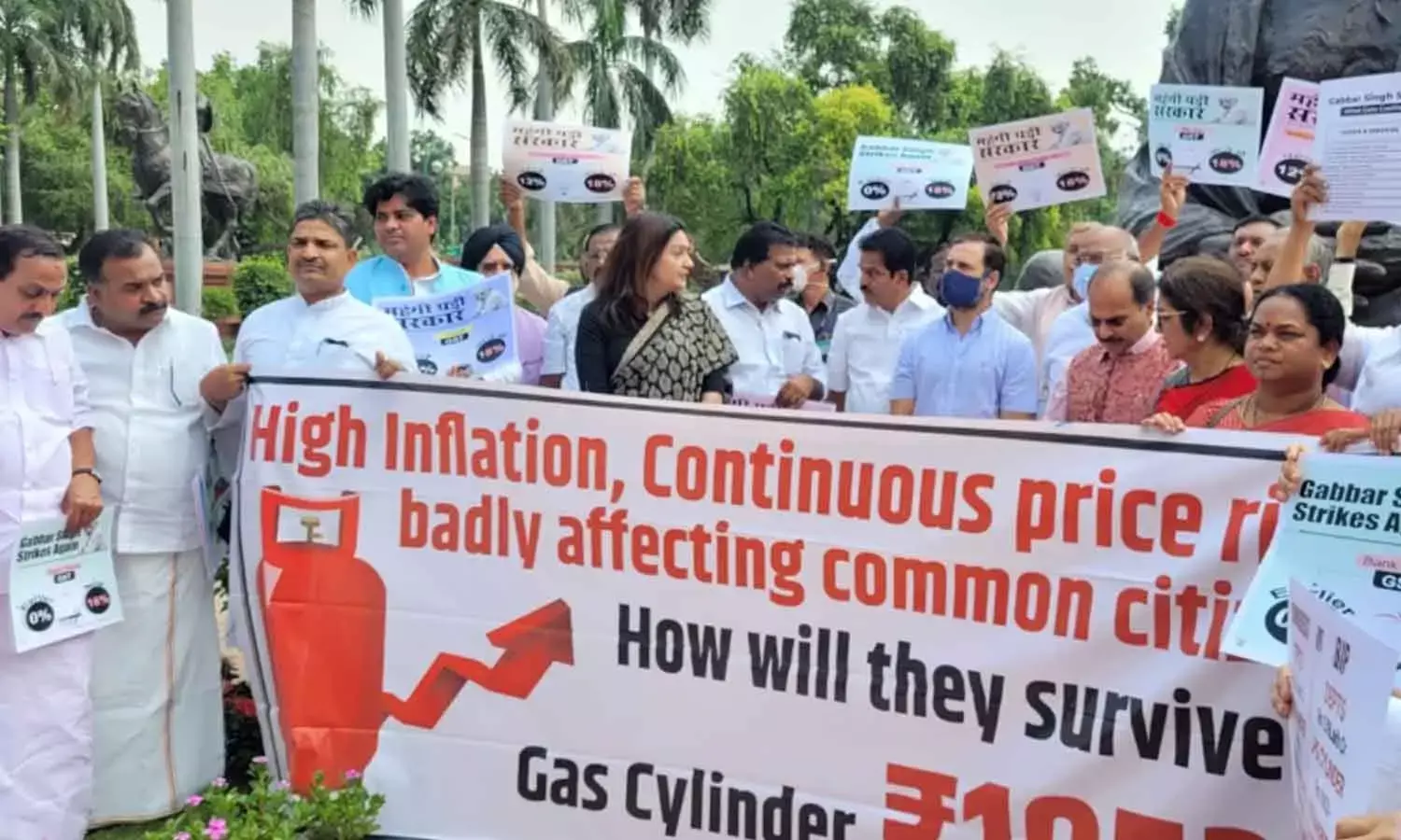 పార్లమెంటు ఆవరణలోని గాంధీ విగ్రహం దగ్గర తమ నిరసనను విపక్ష సభ్యులు ఆందోళన వ్యక్తం చేశారు. పెంచిన ధరలను వెంటనే తగ్గించాలని నేతలు డిమాండ్ చేశారు. నిత్యావసరాలపై ఐదు శాతం జీఎస్టీ విధించడాన్ని కూడా విపక్ష నేతలు తప్పుపడుతున్నారు. ప్రభుత్వం సామాన్యుడిని బతకనివ్వకుండా చేస్తుందని ఆరోపిస్తున్నారు. ధరలను అదుపు చేయలేకపోతే అధికారం నుంచి దిగిపోవాలని నేతలు కోరారు.