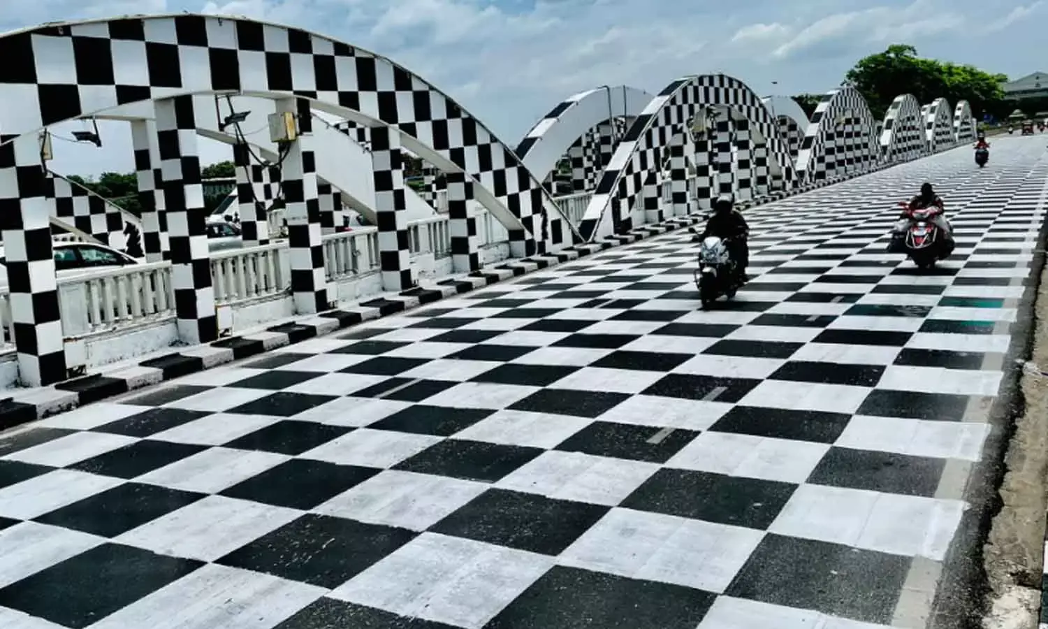 తొలిసారి చెస్ ఒలంపియాడ్ వేడుకలు భారత్ లో జరుగుతున్నాయి. దానికి చెన్నై నగరం వేదిక కానుంది. ఇందులో భాగంగ చెన్నైలోని నేపియర్ వంతెన కు కొత్త హంగులు అద్దారు. చెస్ బోర్డు మాదిరిగానే రోడ్డుతో పాటు వంతెనను కూడా తీర్చిదిద్దారు. ఇది చెన్నై నగరంలో ప్రతి ఒక్కరినీ ఆకట్టుకుంటోంది. చెస్ బోర్డు మాదిరిగా రోడ్డును ముస్తాబు చేసింది.
