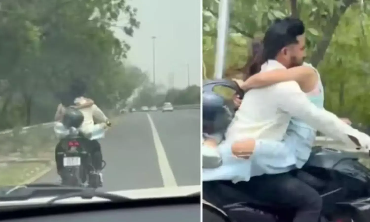 నోయిడా-గ్రేటర్ నోయిడా ఎక్స్ప్రెస్వేపై ఒక జంట బైక్ మీద వెళుతూ ఉంది. ఓ వ్యక్తి బైక్ నడుపుతుండగా, పెట్రోల్ ట్యాంక్ మీద కూర్చుని ఉన్న మహిళ, హెల్మెట్ ధరించకుండా అతడిని కౌగిలించుకున్న వీడియో సోషల్ మీడియాలో వైరల్ అయింది. ఆ ఇద్దరినీ కారులో వెళుతున్న వారు చిత్రీకరించారు. ఆ క్లిప్ ఆన్లైన్లో వైరల్ అయింది.