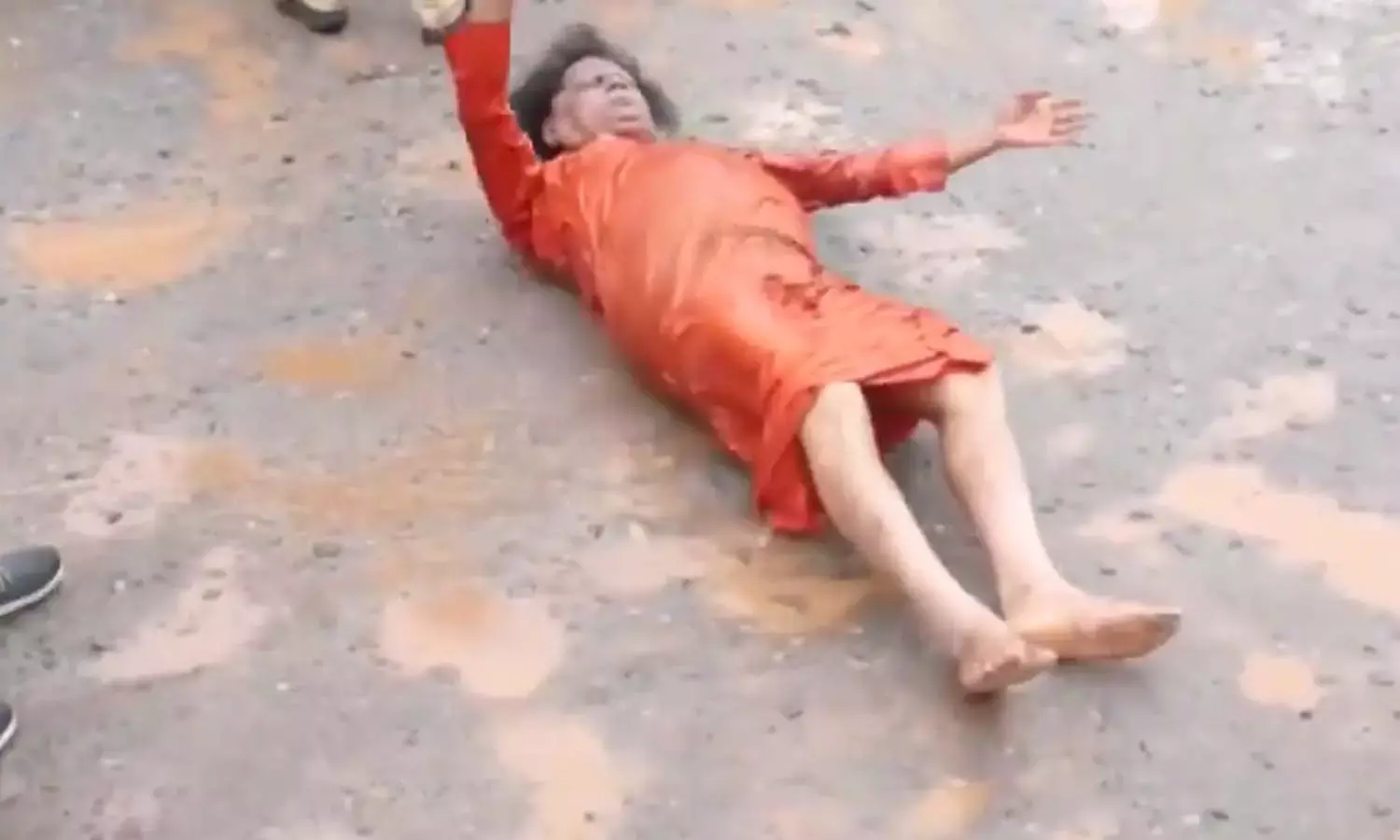 కర్ణాటకలోని ఉడిపిలో రోడ్లపై గుంతలను నిరసిస్తూ పొర్లు దండాలు పెడుతూ ఒక వ్యక్తి నిరసన తెలిపారు.