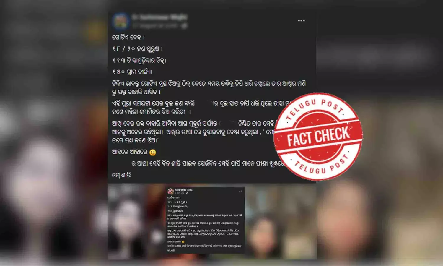 Fact Check: ପୋଷ୍ଟମର୍ଟମ ରିପୋର୍ଟ ଅନୁଯାୟୀ: ୧୫୦ଗ୍ରାମ ଏକ ଆଭ୍ୟନ୍ତରୀଣ ଅଙ୍ଗର ଓଜନକୁ ଦର୍ଶାଏ