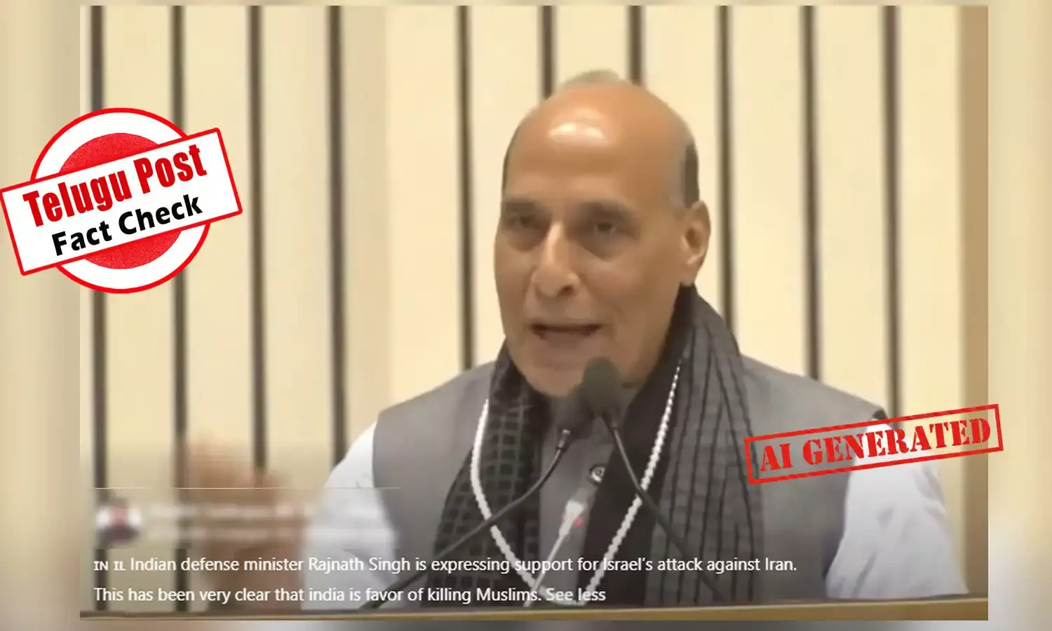 ଫ୍ୟାକ୍ଟ ଚେକ୍: ଇରାନ ଉପରେ ଇସ୍ରାଏଲ ଆକ୍ରମଣକୁ ରାଜନାଥ ସିଂହ ସମର୍ଥନ କରୁଥିବା ଭିଡିଓଟି ଏଆଇ ଅଟେ