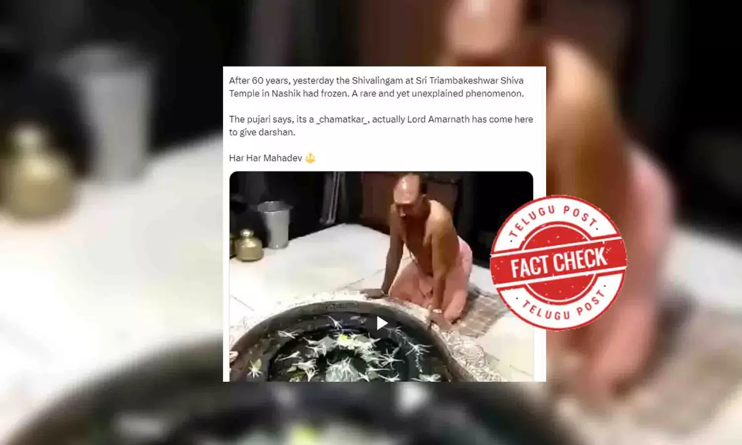 ତେଣୁ, ଭିଡିଓଟି ପୁରୁଣା ଏବଂ ନକଲି ଯାହା ଏକ ମିଥ୍ୟା ଦାବି ସହିତ ସେୟାର କରାଯାଇଥିଲା I ଗଣମାଧ୍ୟମର ରିପୋର୍ଟ ଅନୁଯାୟୀ, ତ୍ରିୟମ୍ବକେଶ୍ୱର ବାବାଙ୍କ ଉପରେ ଏଭଳି କୌଣସି ବରଫ ସୃଷ୍ଟି ହୁଏ ନାହିଁ; ଅଧିକ ଭକ୍ତଙ୍କୁ ଆକର୍ଷିତ କରିବା ପାଇଁ କିଛି ପୁରୋହିତ ଏହାକୁ ତ୍ରିୟମ୍ବକେଶ୍ୱର ବାବାଙ୍କ ପିଣ୍ଡିରେ ରଖିଥିଲେ I