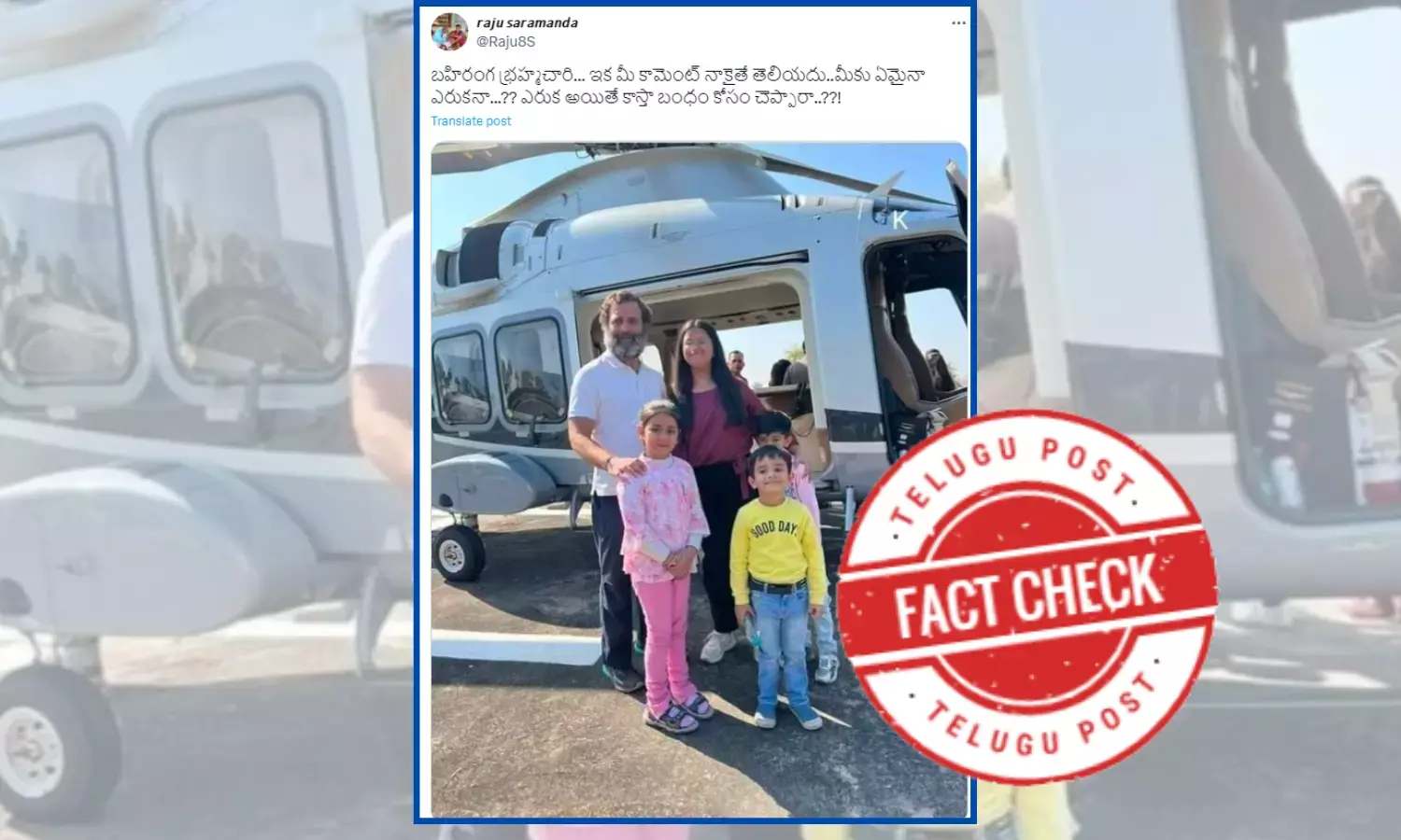 ଇତି ମଧ୍ୟରେ ରାହୁଲ ଗାନ୍ଧୀଙ୍କ ଏକ ଫଟୋ ସୋସିଆଲ ମିଡିଆରେ ଭାଇରାଲ ହେବାରେ ଲାଗିଛି, ଫଟୋ ରେ ରାହୁଲ ଏକ ହେଲିକପ୍ଟର ପାଖରେ ଠିଆ ହୋଇଛନ୍ତି ଏବଂ ପାଖରେ ଅଛନ୍ତି ଜଣେ ମହିଳା ଏବଂ ୩ ଶିଶୁ। ଫଟୋ ସେୟାର କରୁଥିବା ବ୍ୟକ୍ତି ତେଲୁଗୁ ରେ ଲେଖିଛନ୍ତି " దాచేస్తే దాగుతాయా నిజాలు.? ఎప్పటికైనా విత్తనం భూమిని చీల్చుకుంటూ... బయటకు వచ్చినట్లు, అలా అలా బయటకు వచ్చేస్తాయి.!”