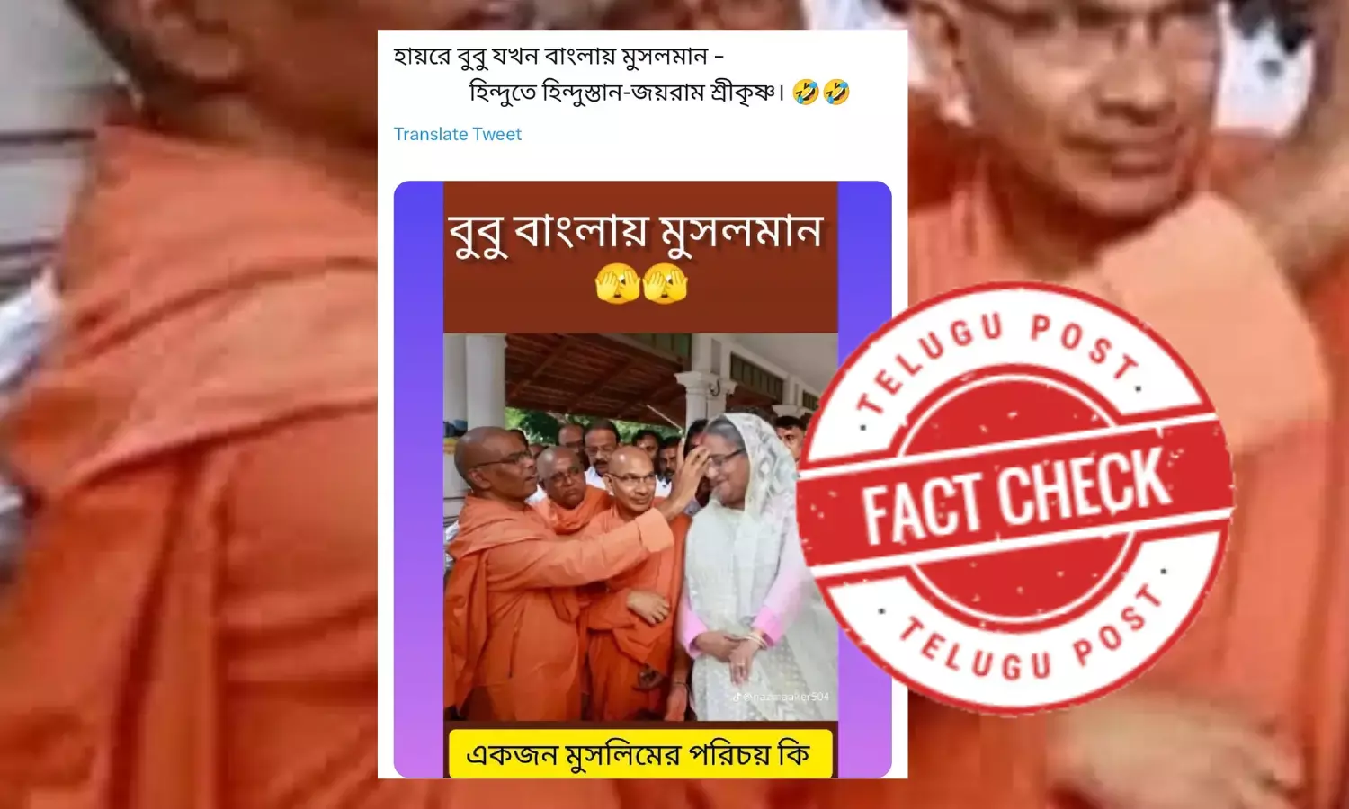 ପ୍ରକୃତ ଫଟୋରେ ଶେଖ ହସିନାଙ୍କ ସ୍ଥାନରେ ଅଛନ୍ତି ରାହୁଲ ଗାନ୍ଧୀ । ୨୦୨୨ ମସିହାରେ ସିଭାଗୀରି ମଠ ପରିଦର୍ଶନ ସମୟରେ ରାହୁଲ ଯାଇଥିବା ବେଳେ ଏହି ଫଟୋଟି ଉଠା ଯାଇଥିଲା ।
