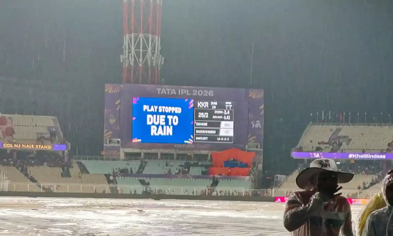 కోల్ కతాలో ప్రారంభమయిన మ్యాచ్ వర్షంతో నిలిచిపోయింది
