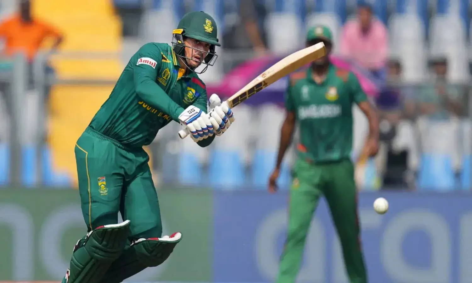 వరల్డ్ కప్ లో బంగ్లాదేశ్ కు మరో పరాజయం ఎదురైంది. బంగ్లాదేశ్ మీద దక్షిణాఫ్రికా జట్టు 149 పరుగుల తేడాతో విజయం సాధించింది. ముంబైలోని వాంఖడే స్టేడియంలో జరిగిన ఈ మ్యాచ్ లో మొదట బ్యాటింగ్ చేసిన దక్షిణాఫ్రికా నిర్ణీత 50 ఓవర్లలో 5 వికెట్ల నష్టానికి 382 పరుగులు చేసింది. ఓపెనర్ డికాక్ 140 బంతుల్లోనే 174 పరుగులు చేశాడు. క్లాసన్ 2 ఫోర్లు, 8 సిక్సర్లతో 49 బంతుల్లోనే 90 పరుగులు చేయగా.. మిల్లర్ 15 బంతుల్లోనే నాలుగు సిక్సర్లు, ఒక ఫోర్ తో 34 పరుగులు చేసాడు. కెప్టెన్ మార్కరం 60 పరుగులు చేసాడు. బంగ్లా బౌలర్లలో హసన్ మహమ్మద్ రెండు వికెట్లు తీసుకోగా.. షకీబ్, షరిఫుల్ ఇస్లాం, మెహదీ హాసన్ మిరాజ్ తలో వికెట్ తీసుకున్నారు.