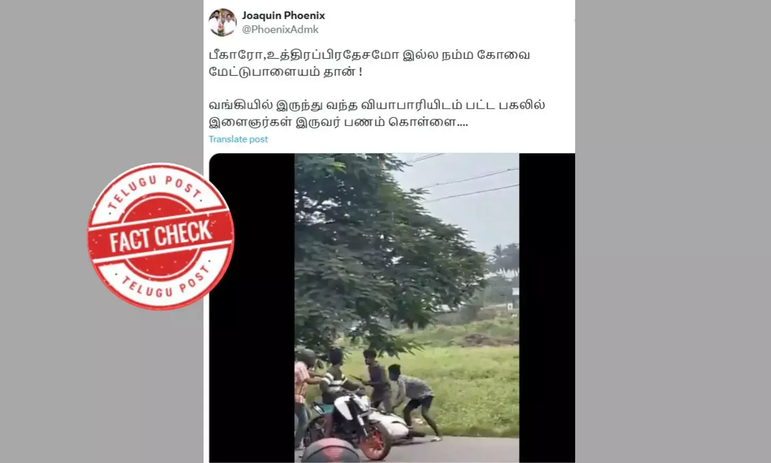 Joaquin Phoenix என்ற எக்ஸ் பயனர் இந்த வீடியோவை பகிர்ந்து, “பீகாரோ,உத்திரப்பிரதேசமோ இல்ல நம்ம கோவை மேட்டுபாளையம் தான். வங்கியில் இருந்து வந்த வியாபாரியிடம் பட்ட பகலில் இளைஞர்கள் இருவர் பணம் கொள்ளை” என்று தெரிவித்து இருந்தார்.