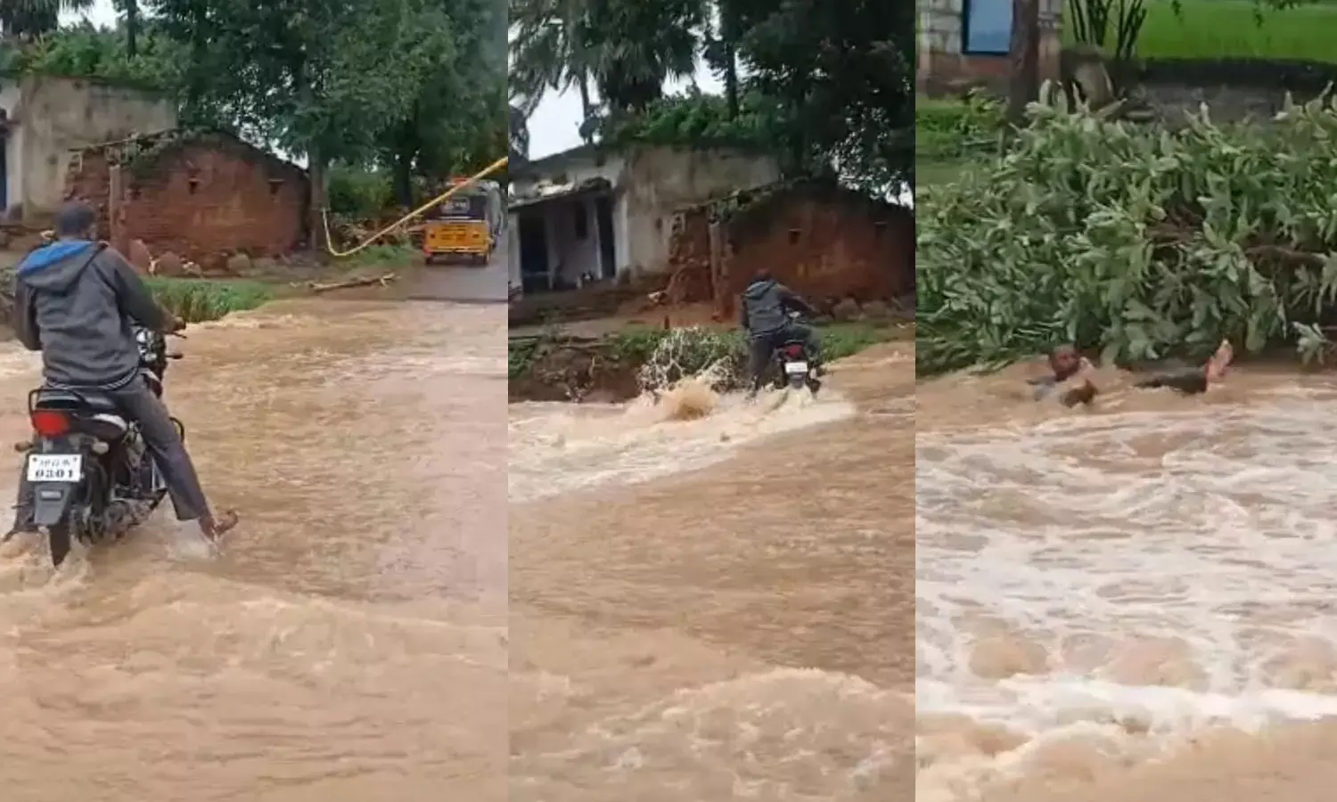 బైక్ తో సహా వాగులో కొట్టుకుపోయిన వ్యక్తి