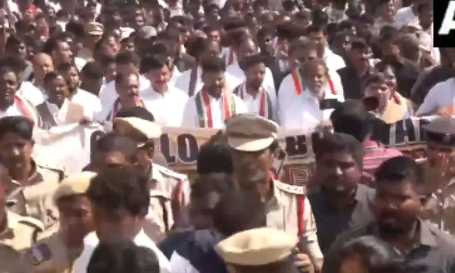 తెలంగాణ కాంగ్రెస్ పార్టీ ఆధ్వర్యంలో చలో రాజ్ భవన్ కార్యక్రమం జరిగింది. ఇందిరాగాంధీ విగ్రహం నుంచి రాజ్ భవన్ వరకూ నేతలు, కార్యకర్తలు ర్యాలీగా బయలుదేరి వెళ్లారు. మోదీ ప్రభుత్వం గౌతమ్ అదానీ అవినీతిపై విచారణలు జరపాలని, మణిపూర్ ఘటనపై మోదీ స్పందించాలని డిమాండ్ చేస్తూ ఈ కార్యక్రమాన్ని పీసీసీ చీఫ్ మహేష్ కుమార్ గౌడ్ నేతృత్వంలో ర్యాలీ చేపట్టారు.
