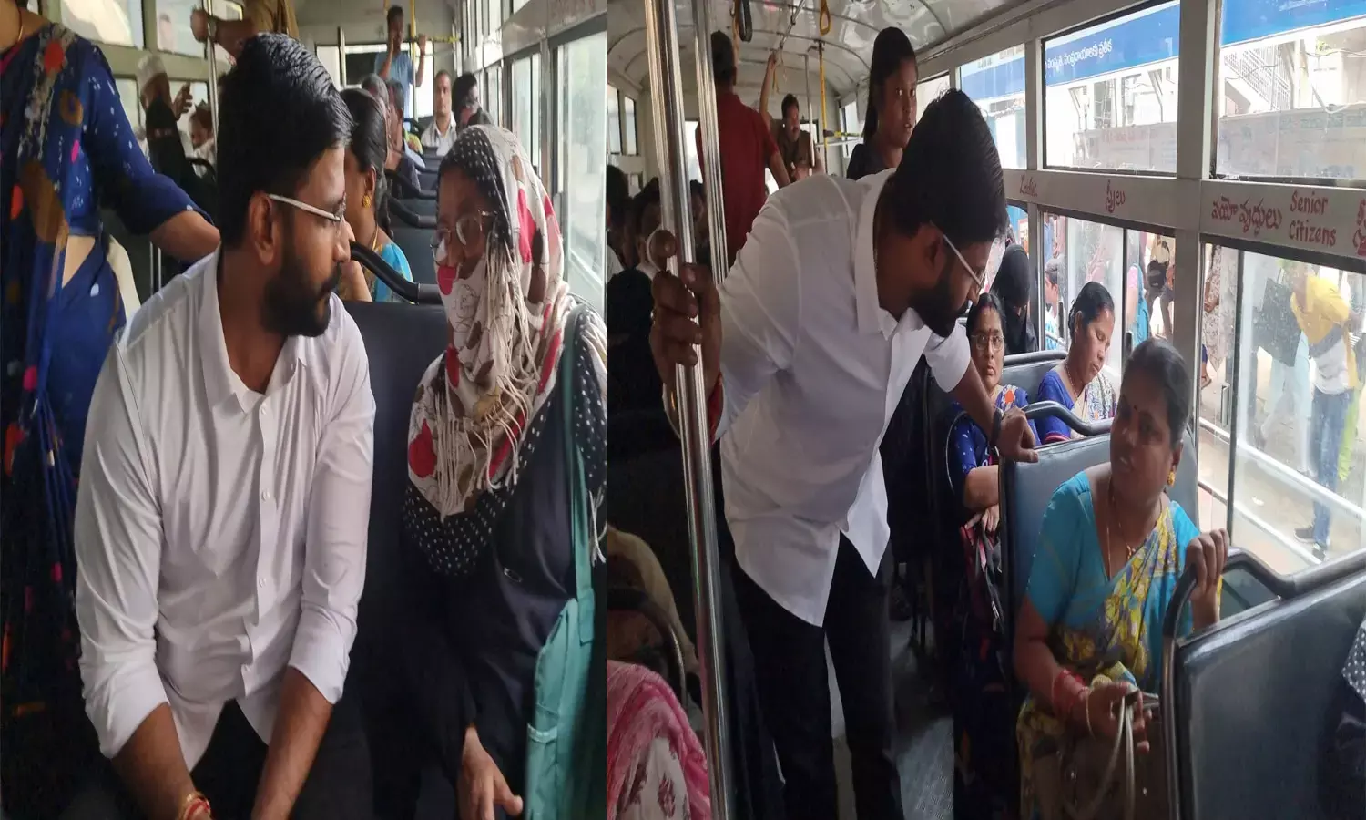 ఆర్టీసీ బస్సులో ఎమ్మెల్సీ బల్మూరి వెంకట్ ఉచిత బస్సు ప్రయాణంపై మహిళలతో వారి అనుభవాలను అడిగి తెలుసుకున్నారు. మహిళలతో మాట్లాడి ఉచిత బస్సు ప్రయాణంలో ఏమైనా ఇబ్బందులున్నాయా? అని ప్రశ్నించారు. మహిళలు మాత్రం ఉచిత బస్సు ప్రయాణాలపై పూర్తి స్థాయిలో సంతృప్తి వ్యక్తం చేశారని ఎమ్మెల్సీ బల్మూరి వెంకట్ తెలిపారు.